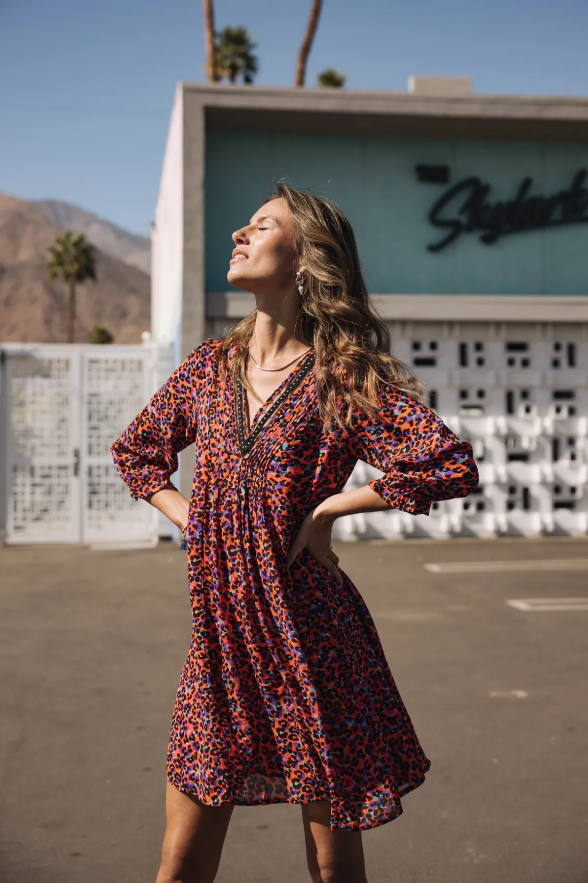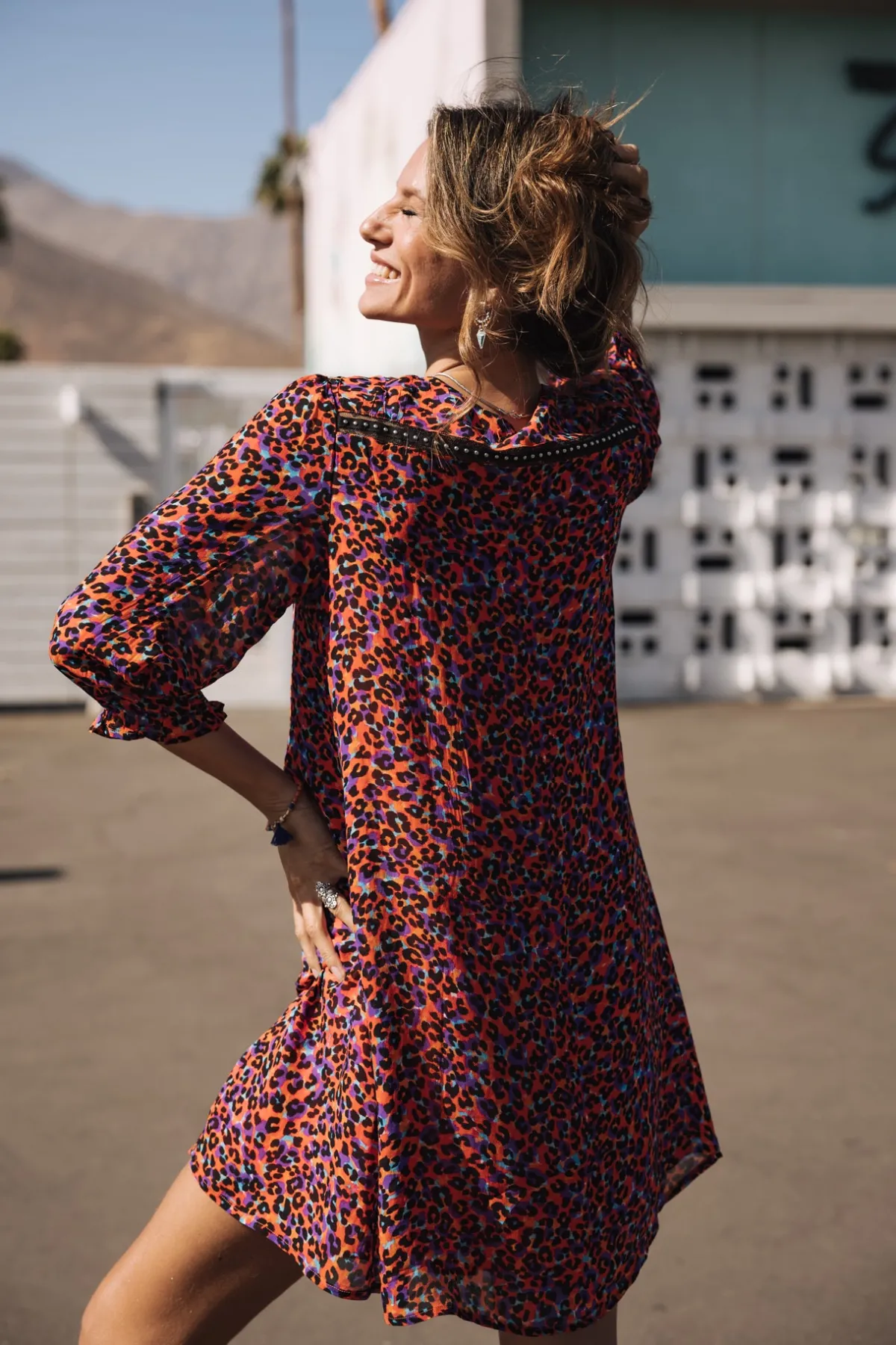 – Short dress with 3/4 puffed sleeves