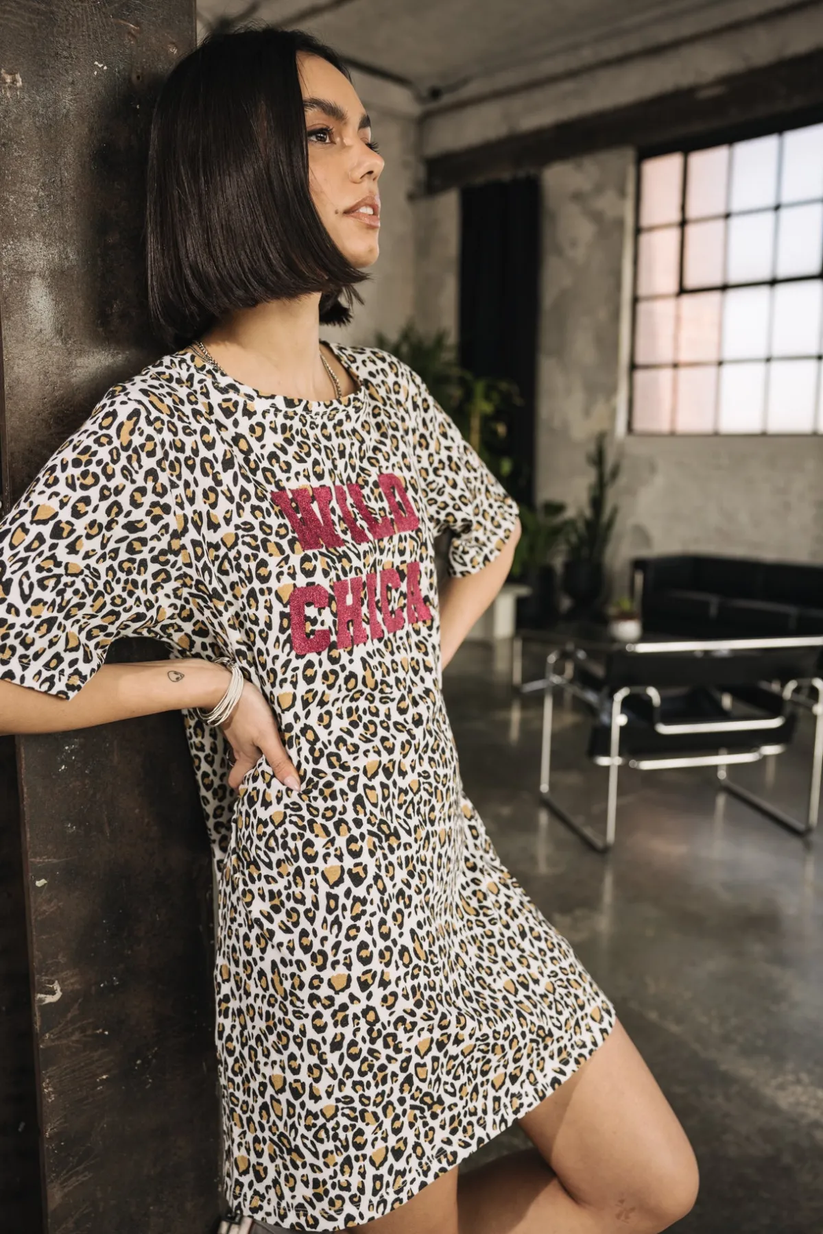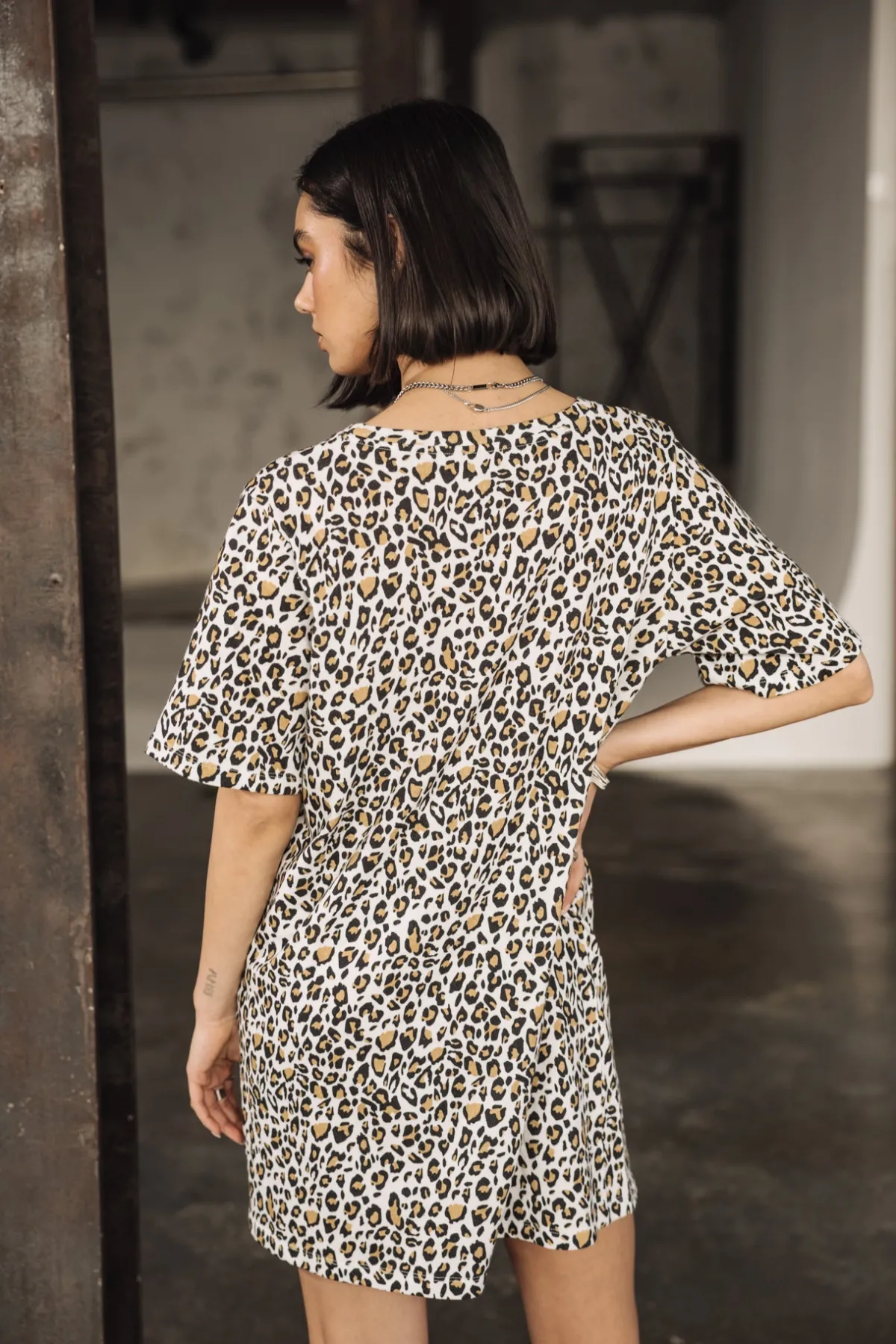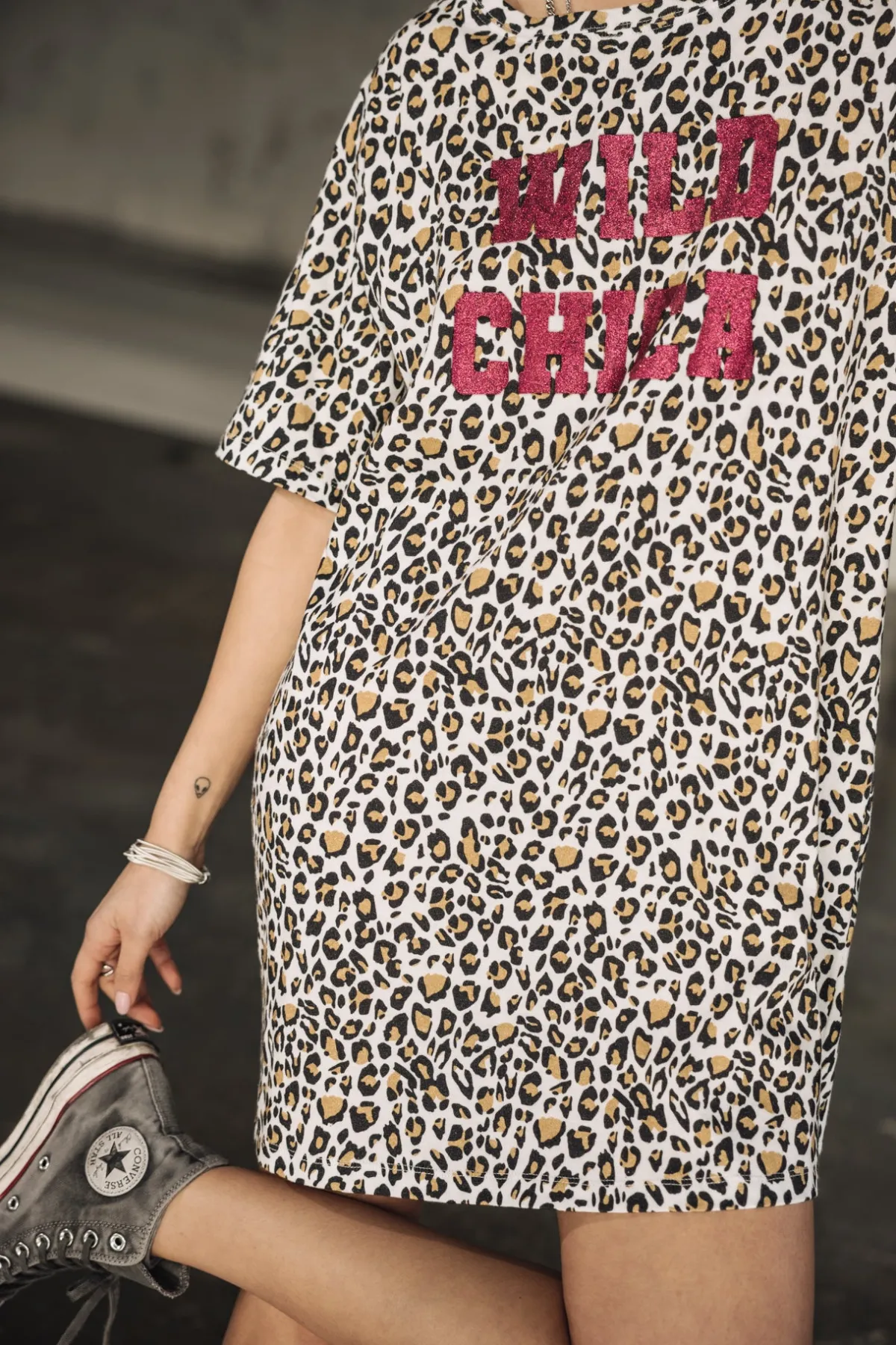 – Short-sleeved t-shirt dress in soft cotton medium-weight jersey fabric in full leopard print