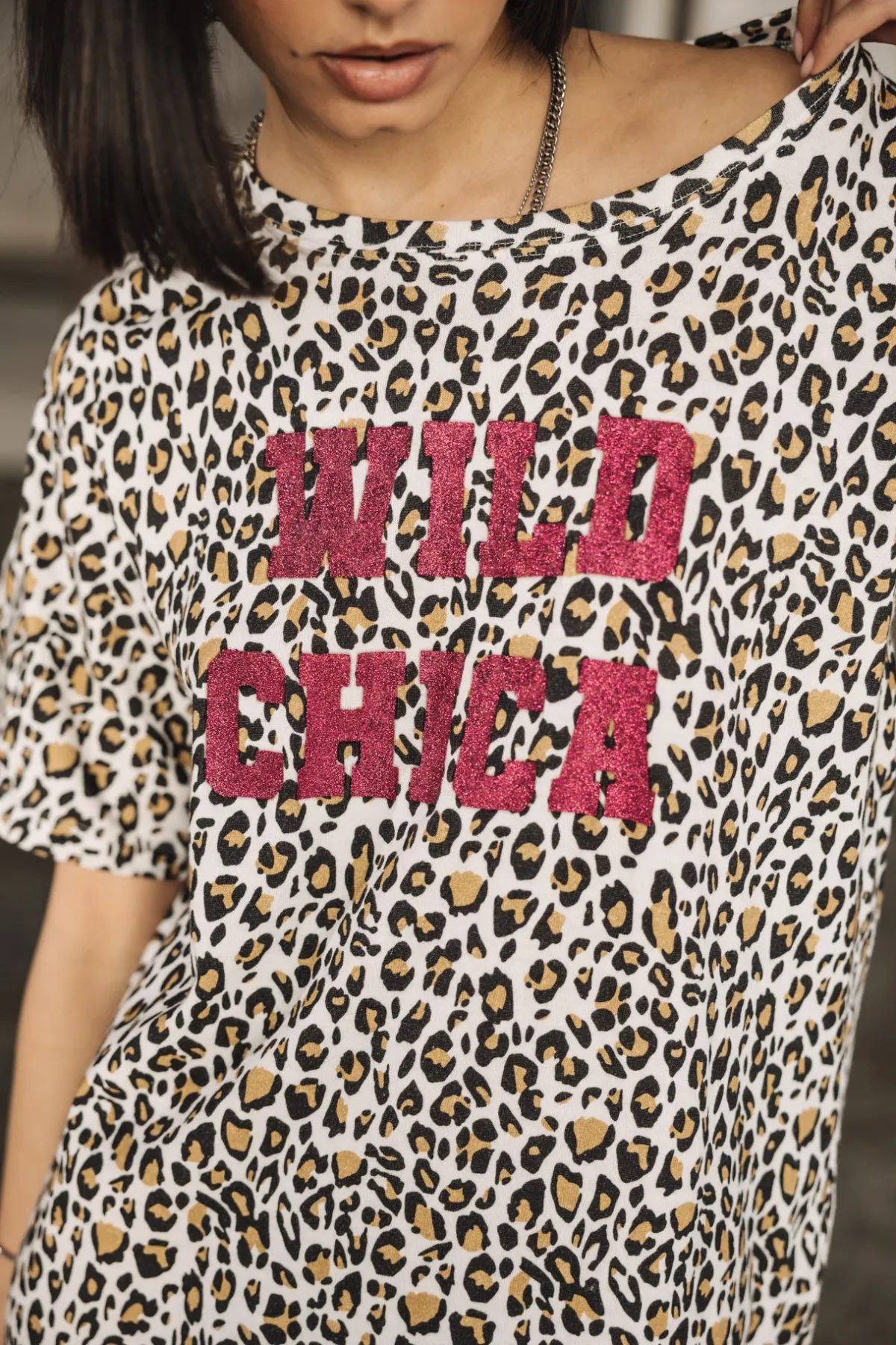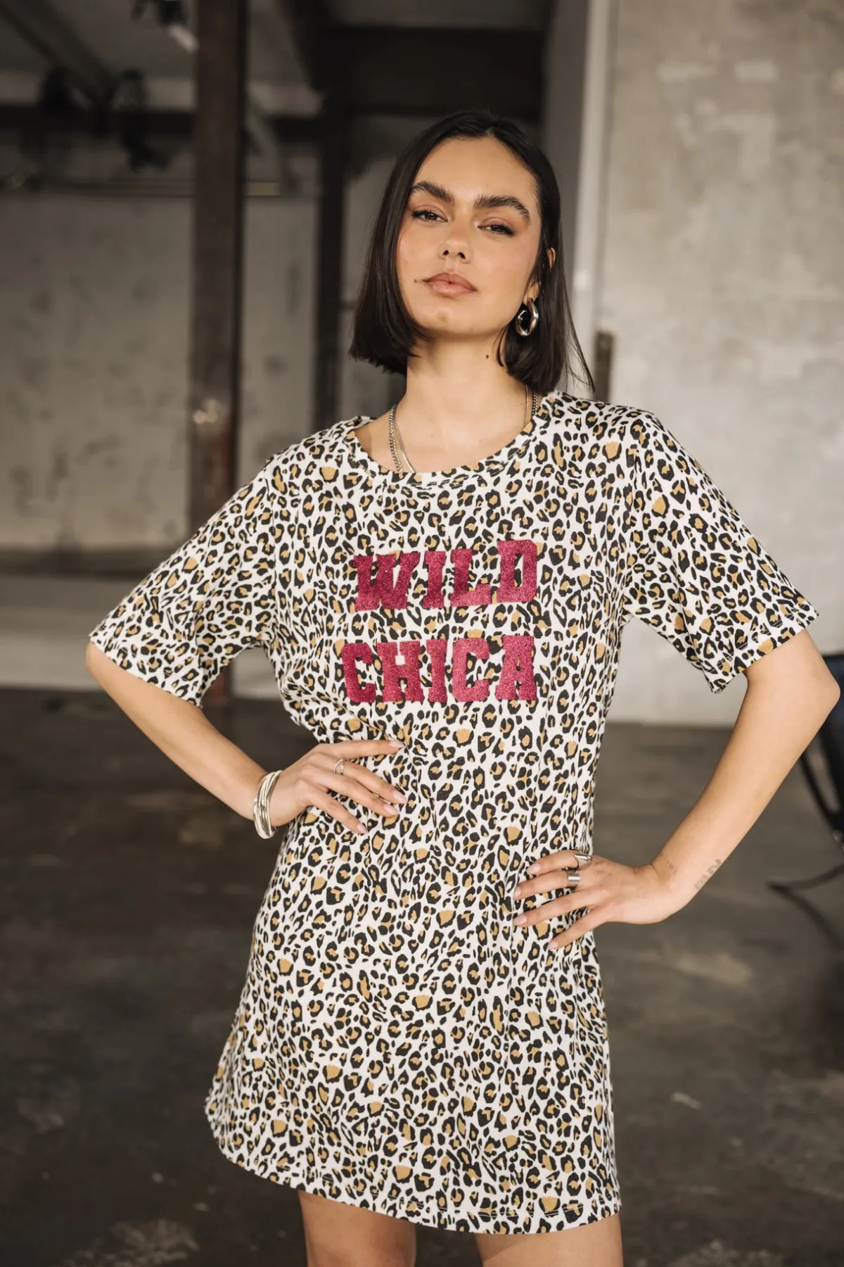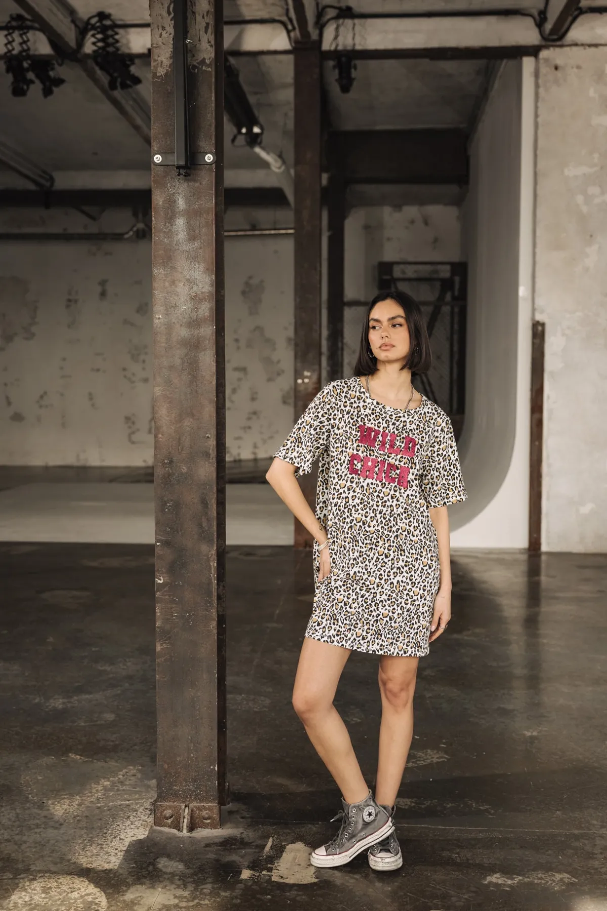 – Short-sleeved t-shirt dress in soft cotton medium-weight jersey fabric in full leopard print