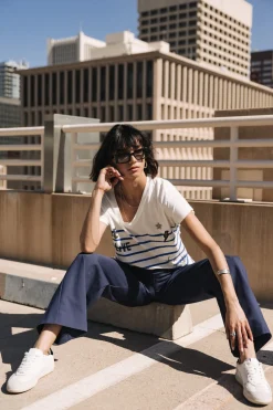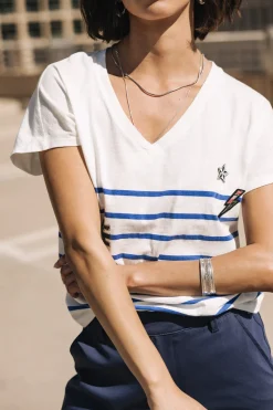 – Short-sleeved sailor t-shirt in medium-weight flamed cotton jersey fabric