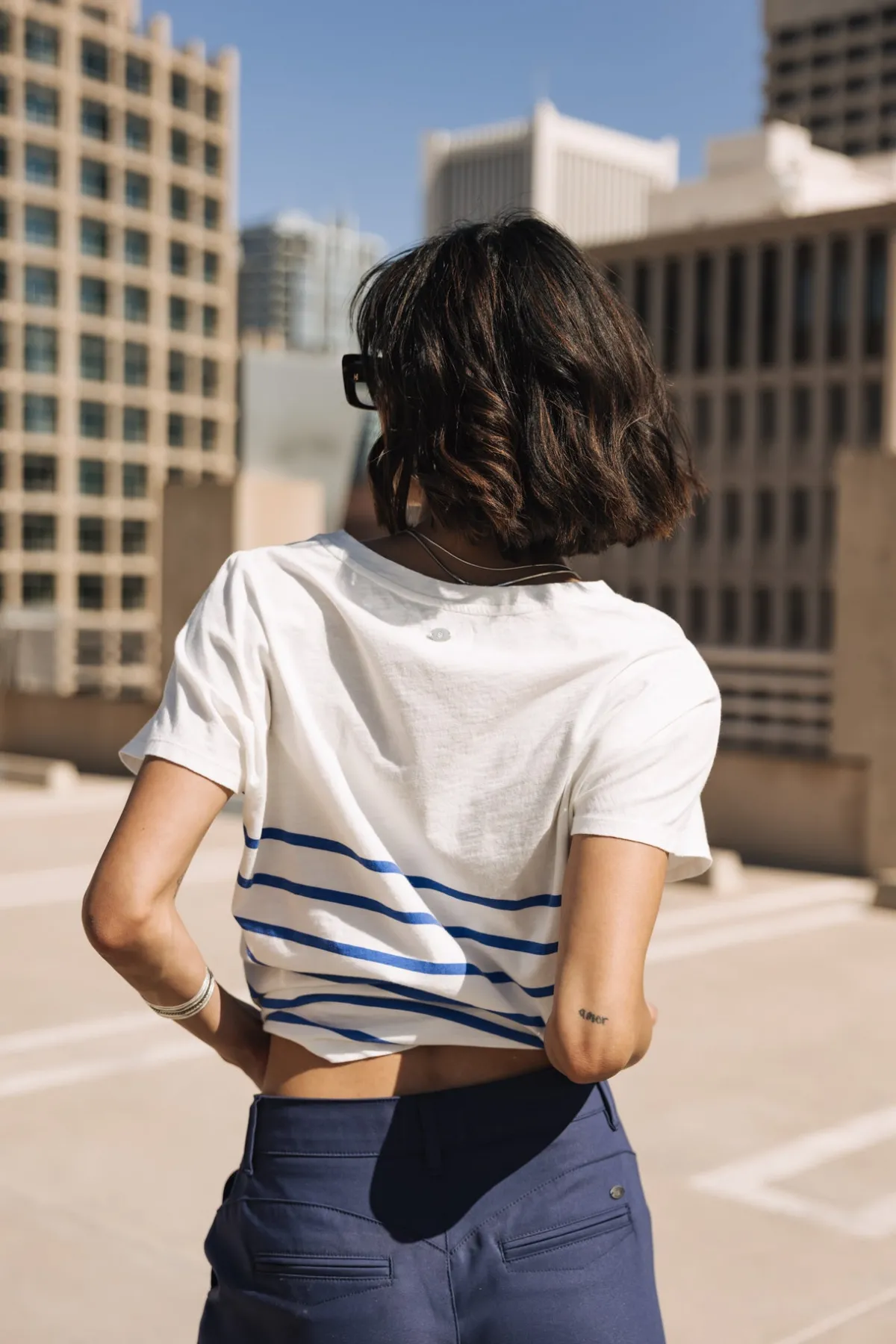 Striped V-neck T-shirt