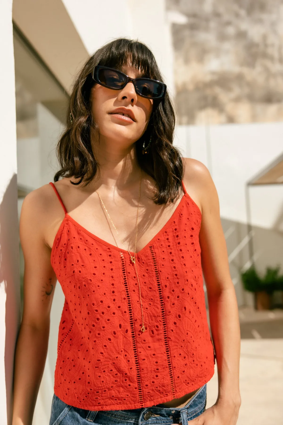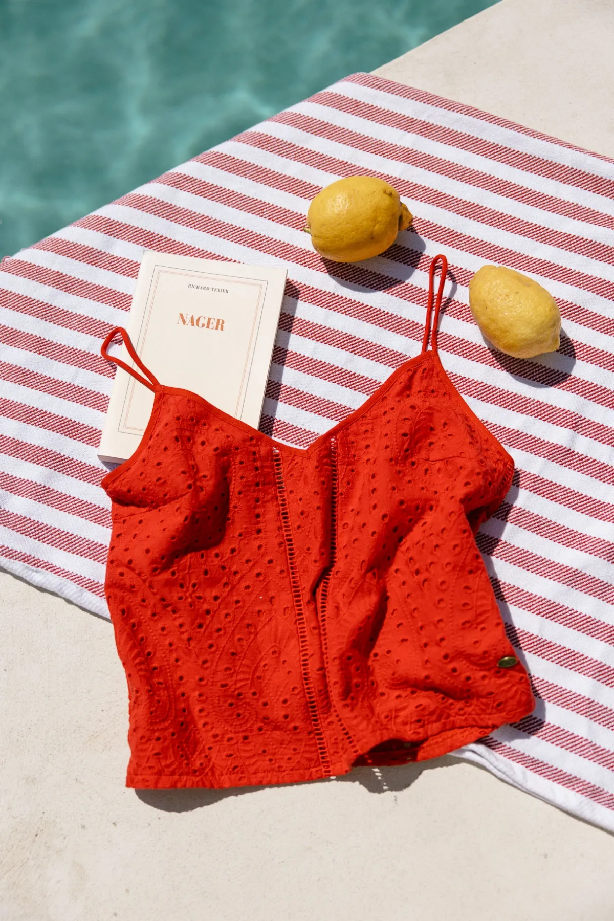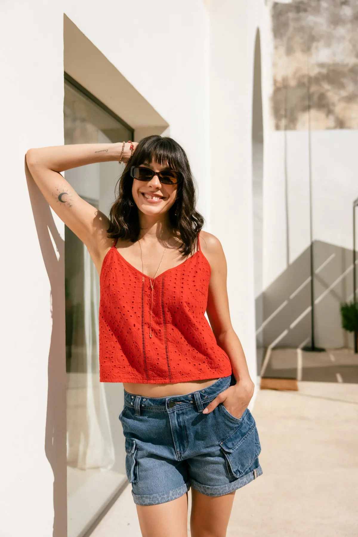 – Plain top with adjustable straps in broderie anglaise 100% plain cotton