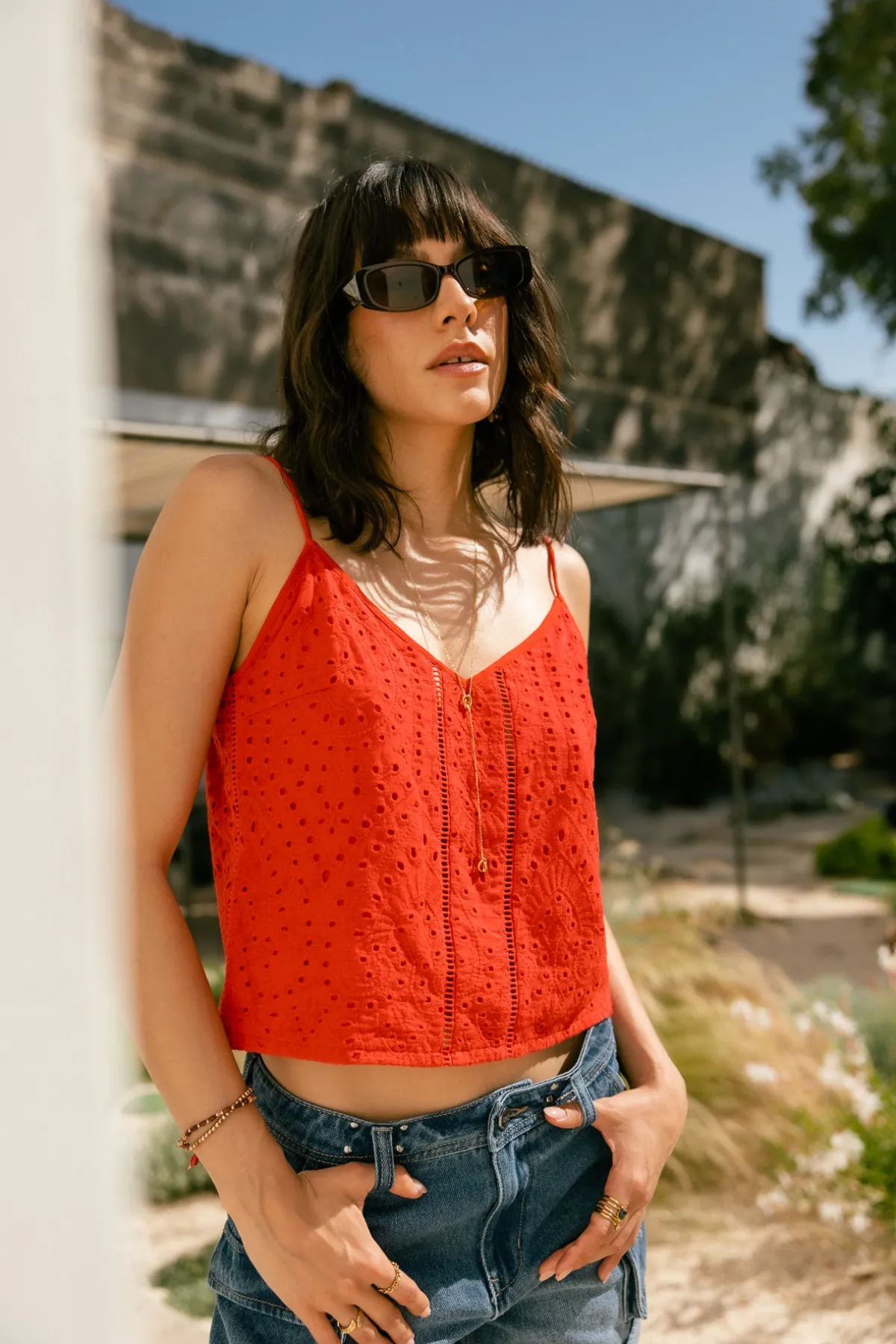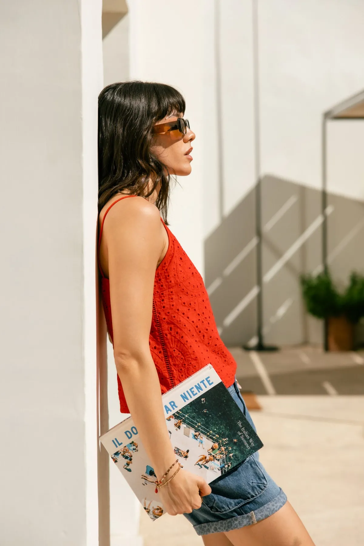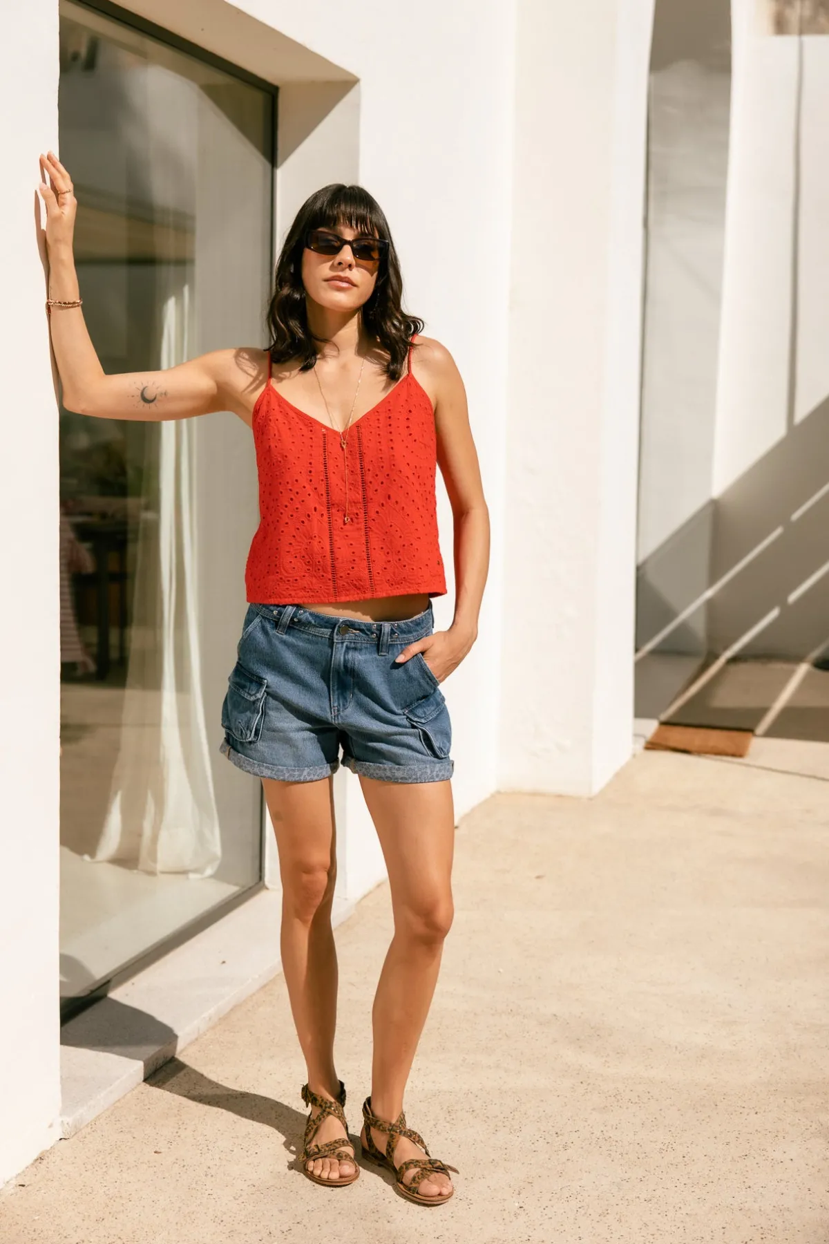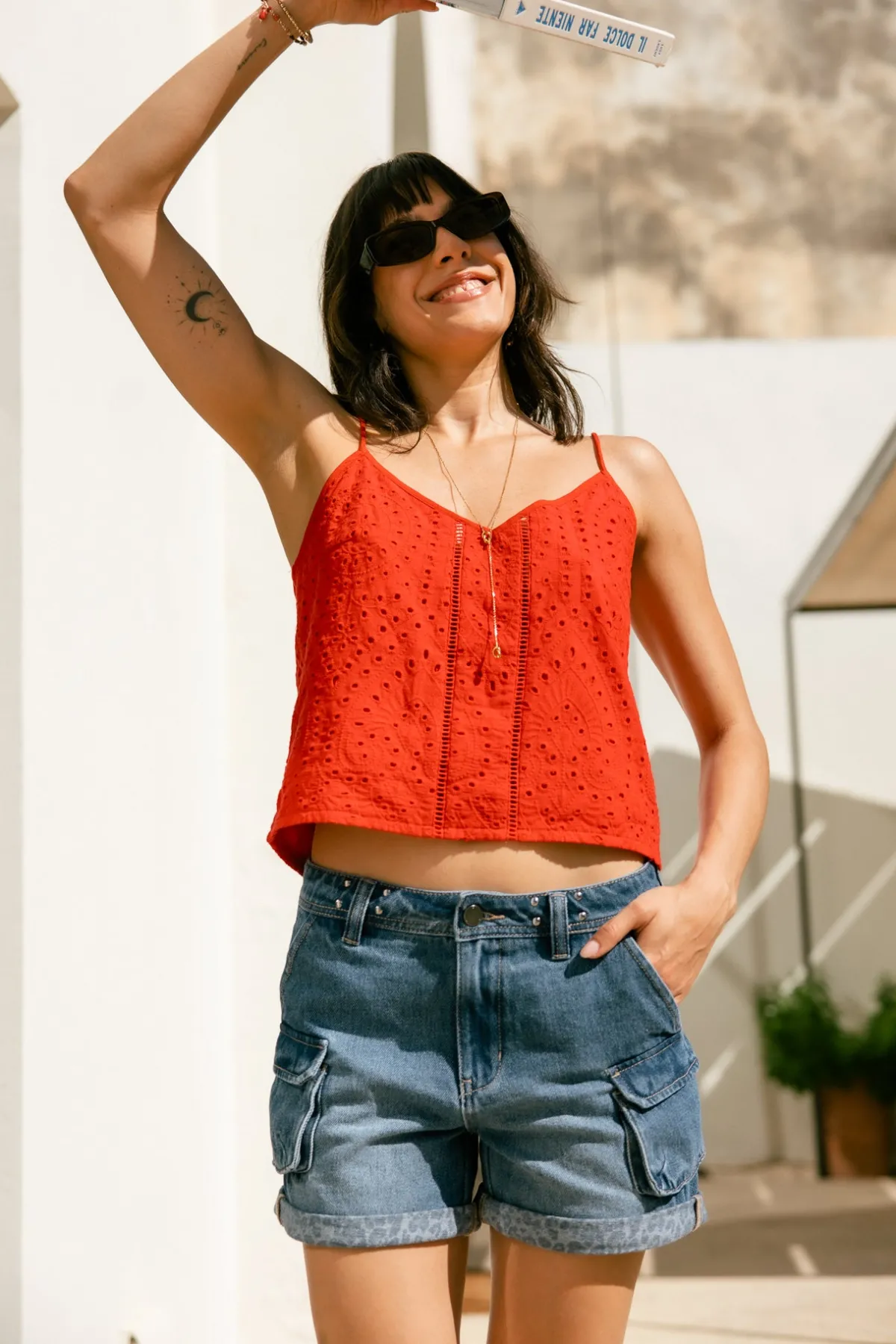 – Plain top with adjustable straps in broderie anglaise 100% plain cotton