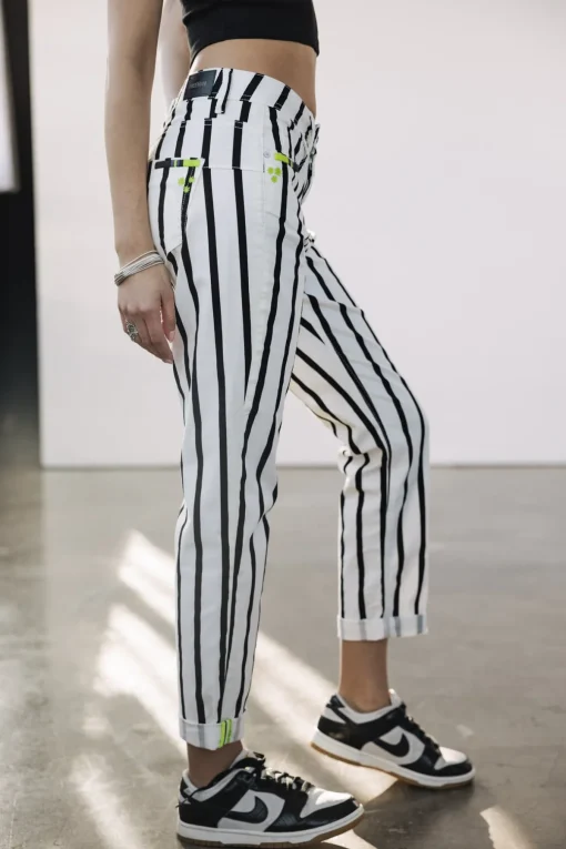 – Slightly stretch baby twill fabric, wide black and white stripes
