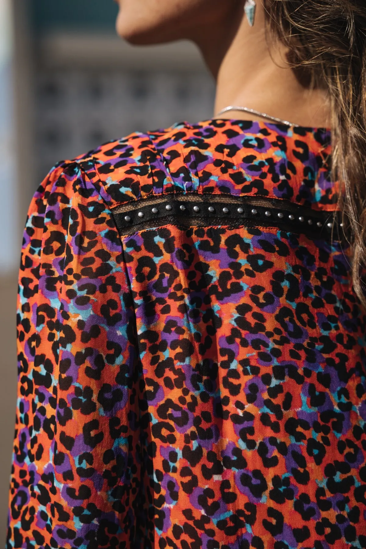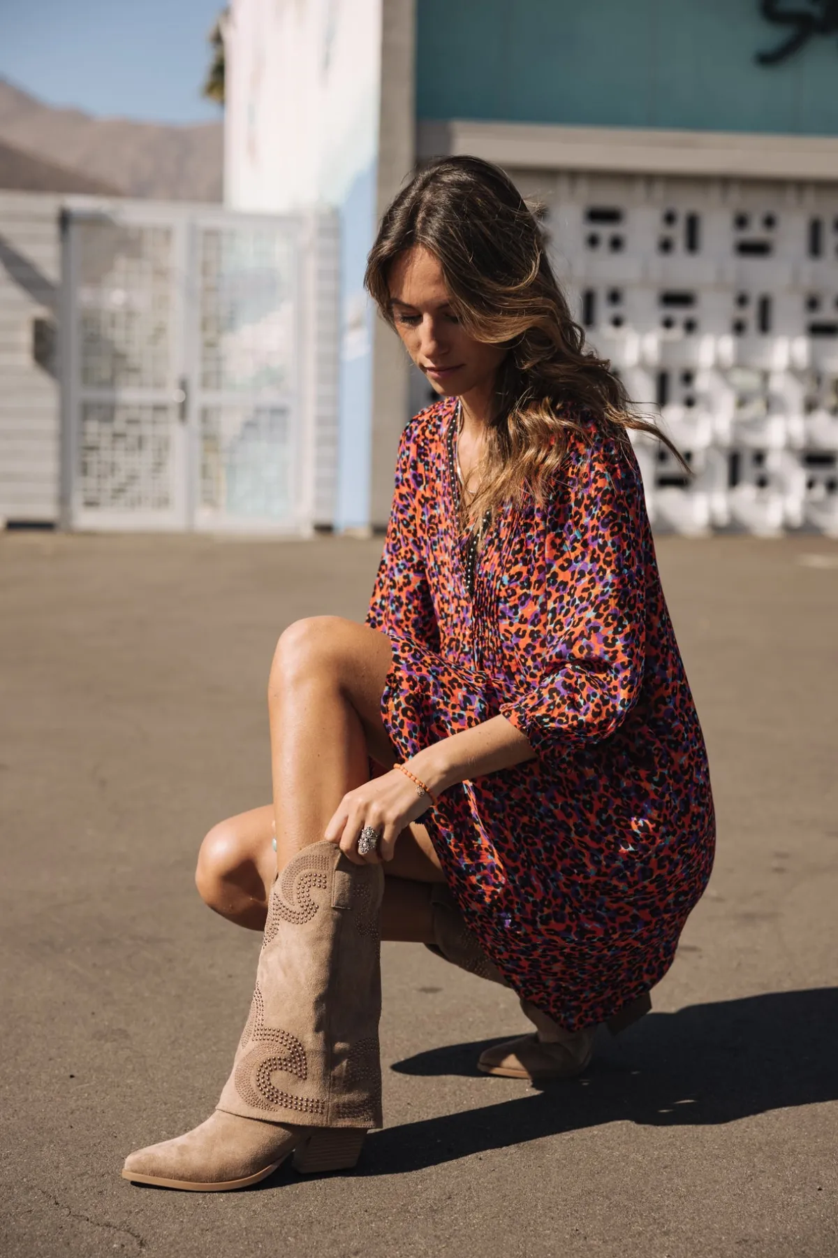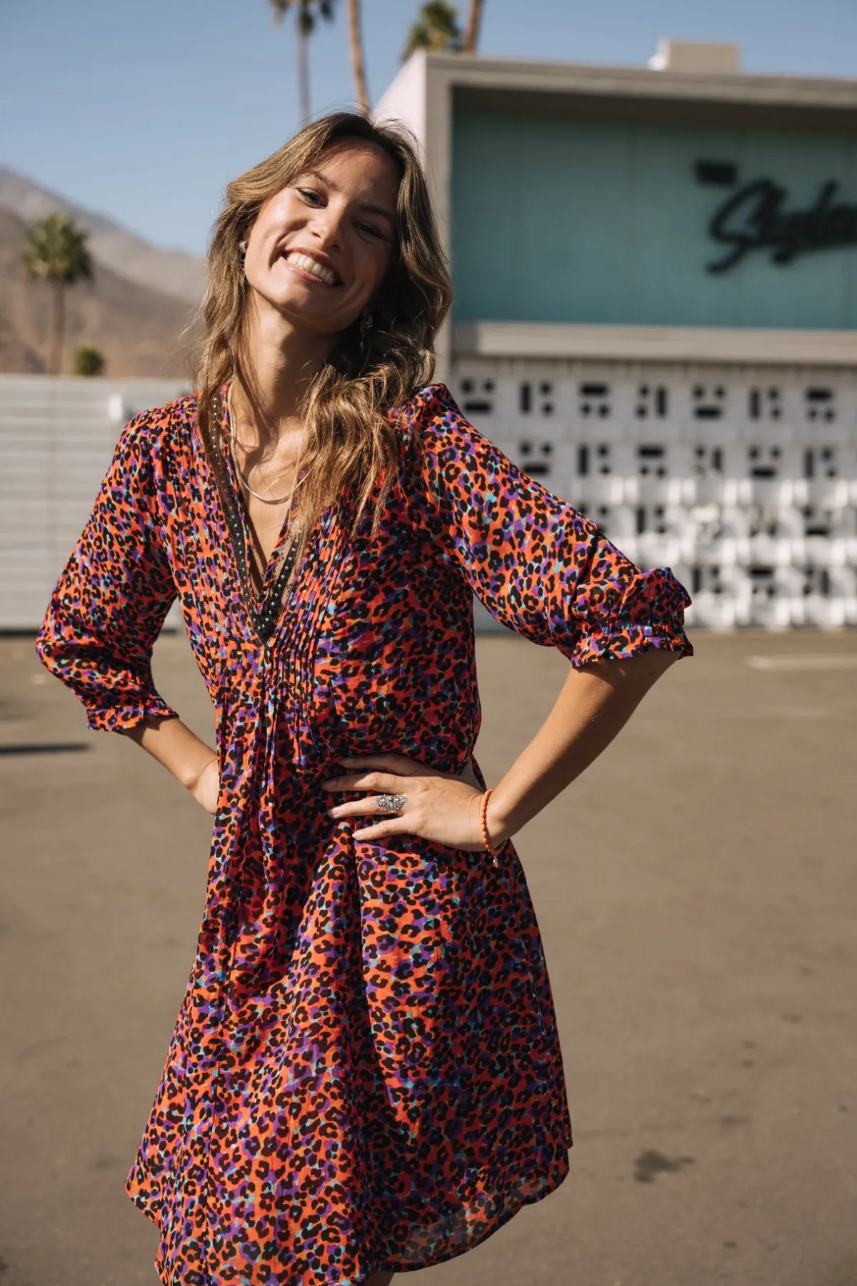 – Short dress with 3/4 puffed sleeves