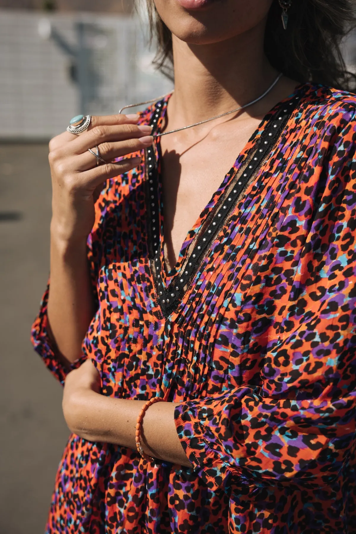 – V-neckline with pleats
