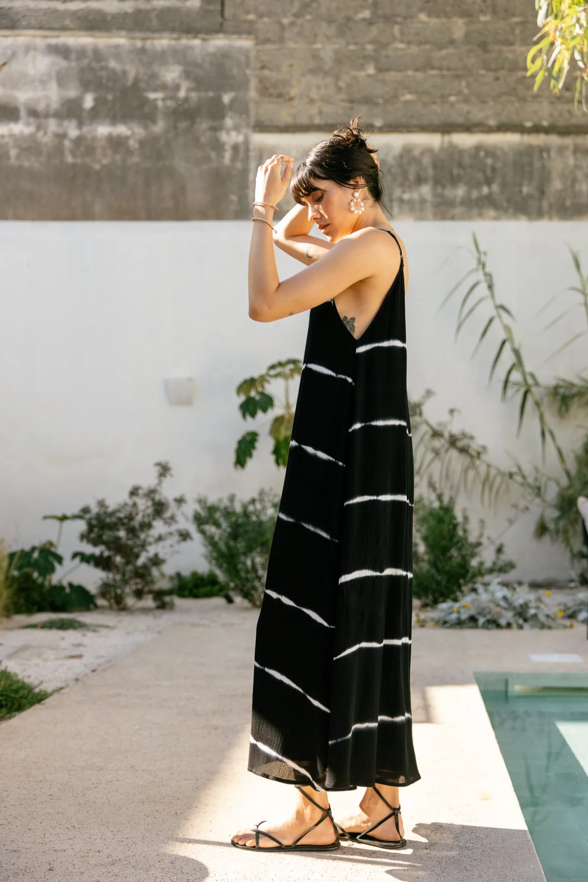 – Long dress with adjustable straps, tie & dye print in a crinkled, light, flowing fabric