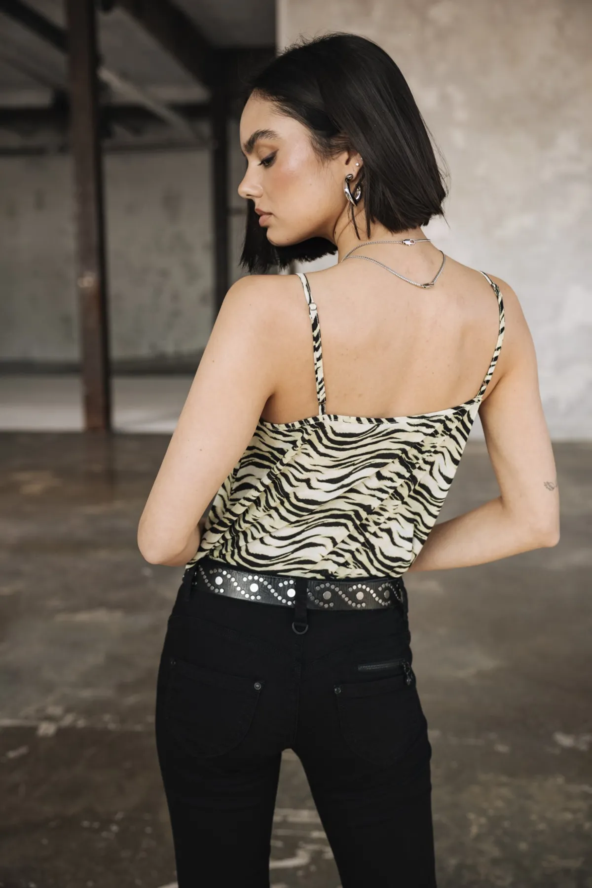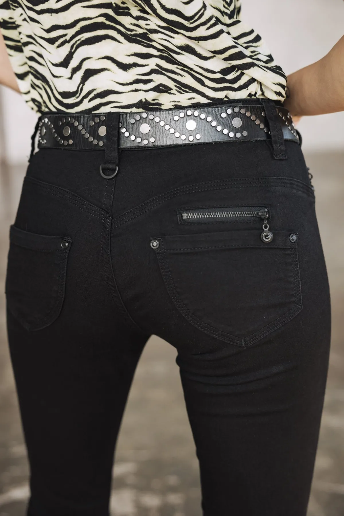 Zips and fancy details on pockets Heart-shaped back panel