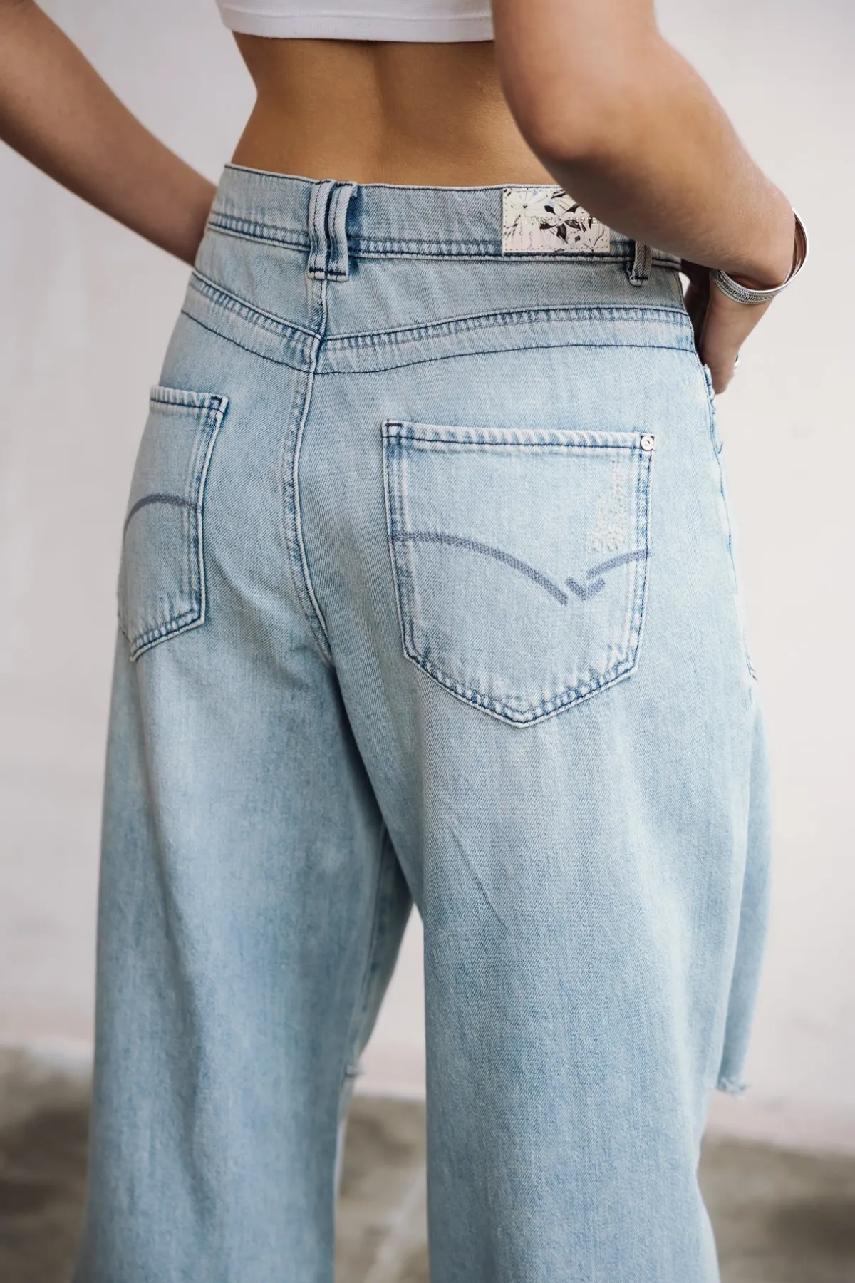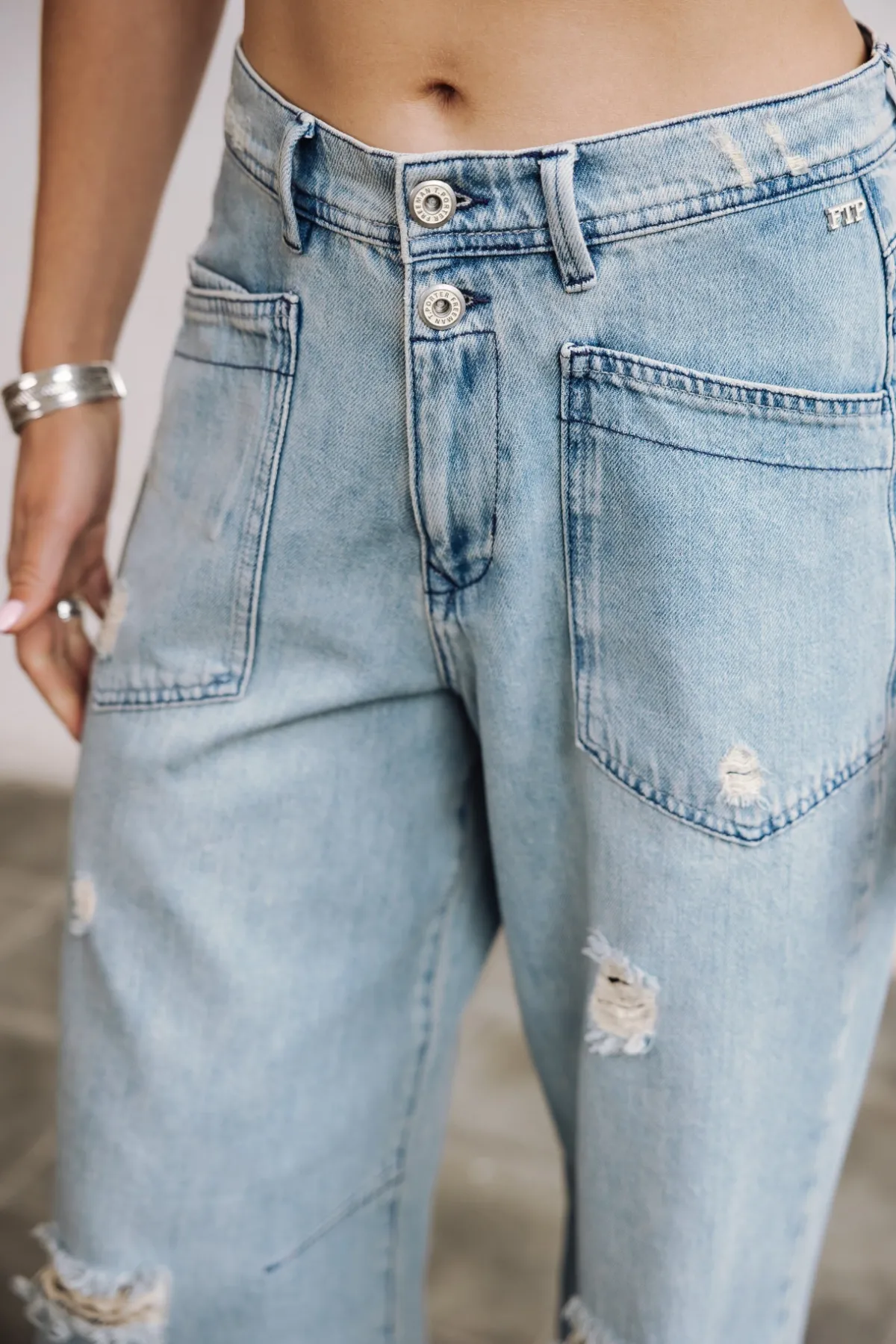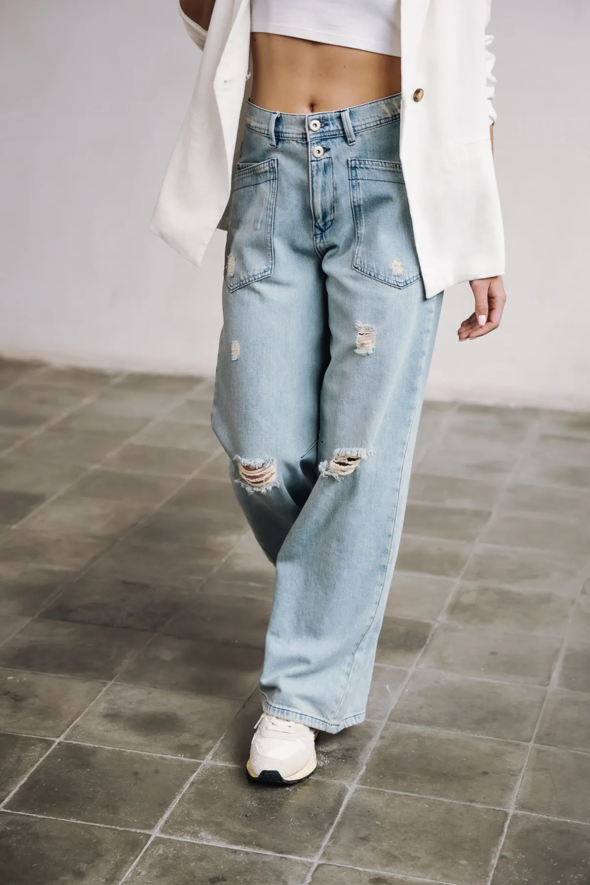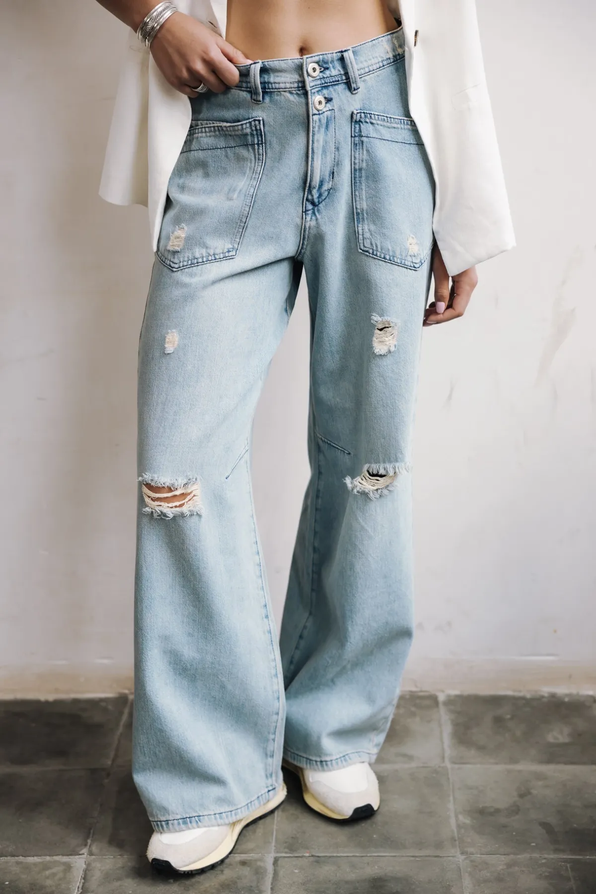 – Light blue, bleached wash, with rips