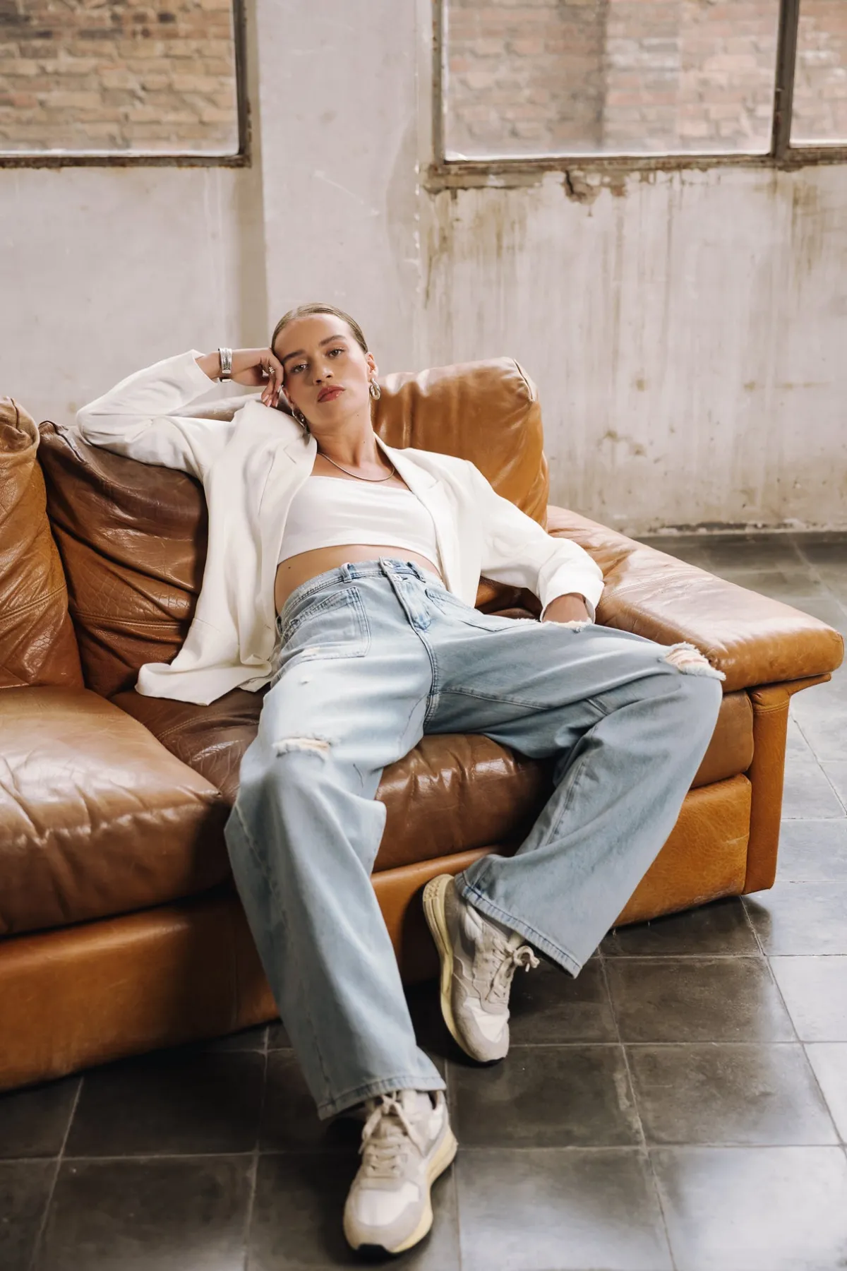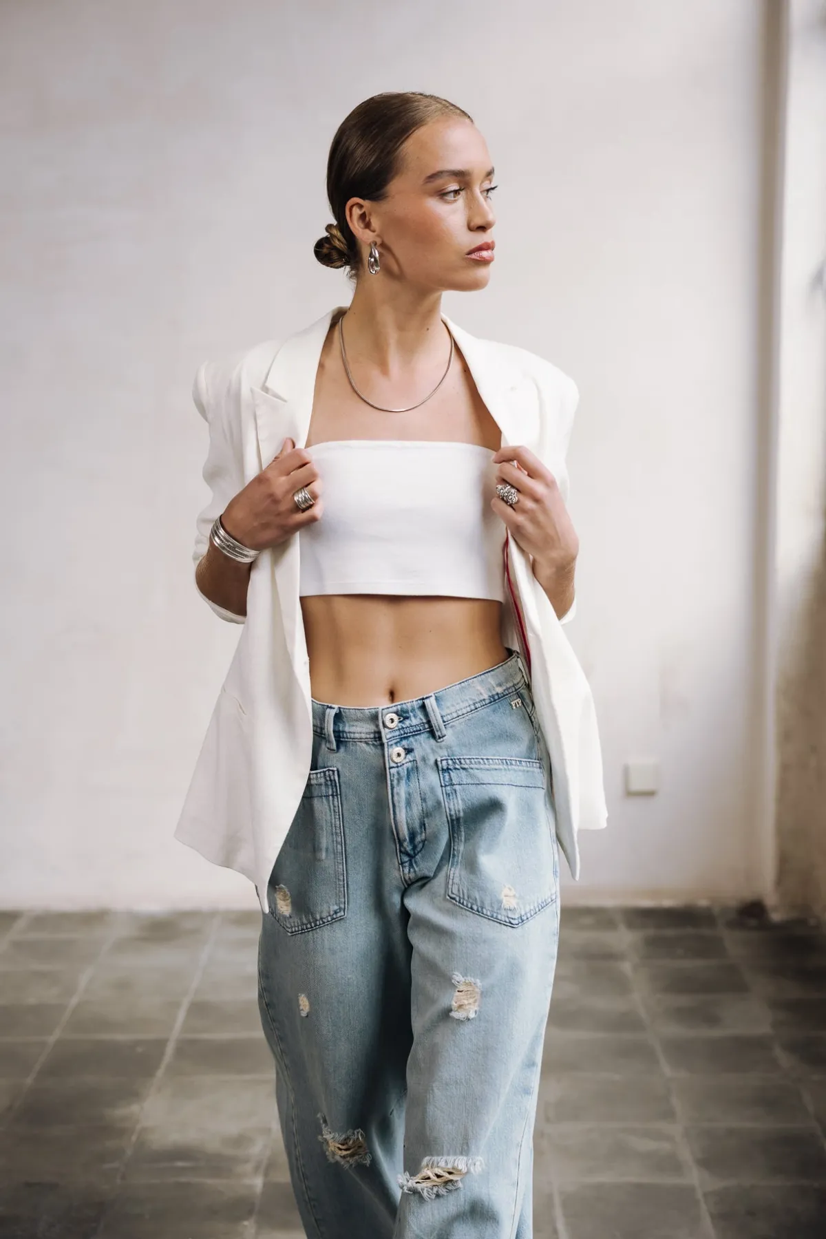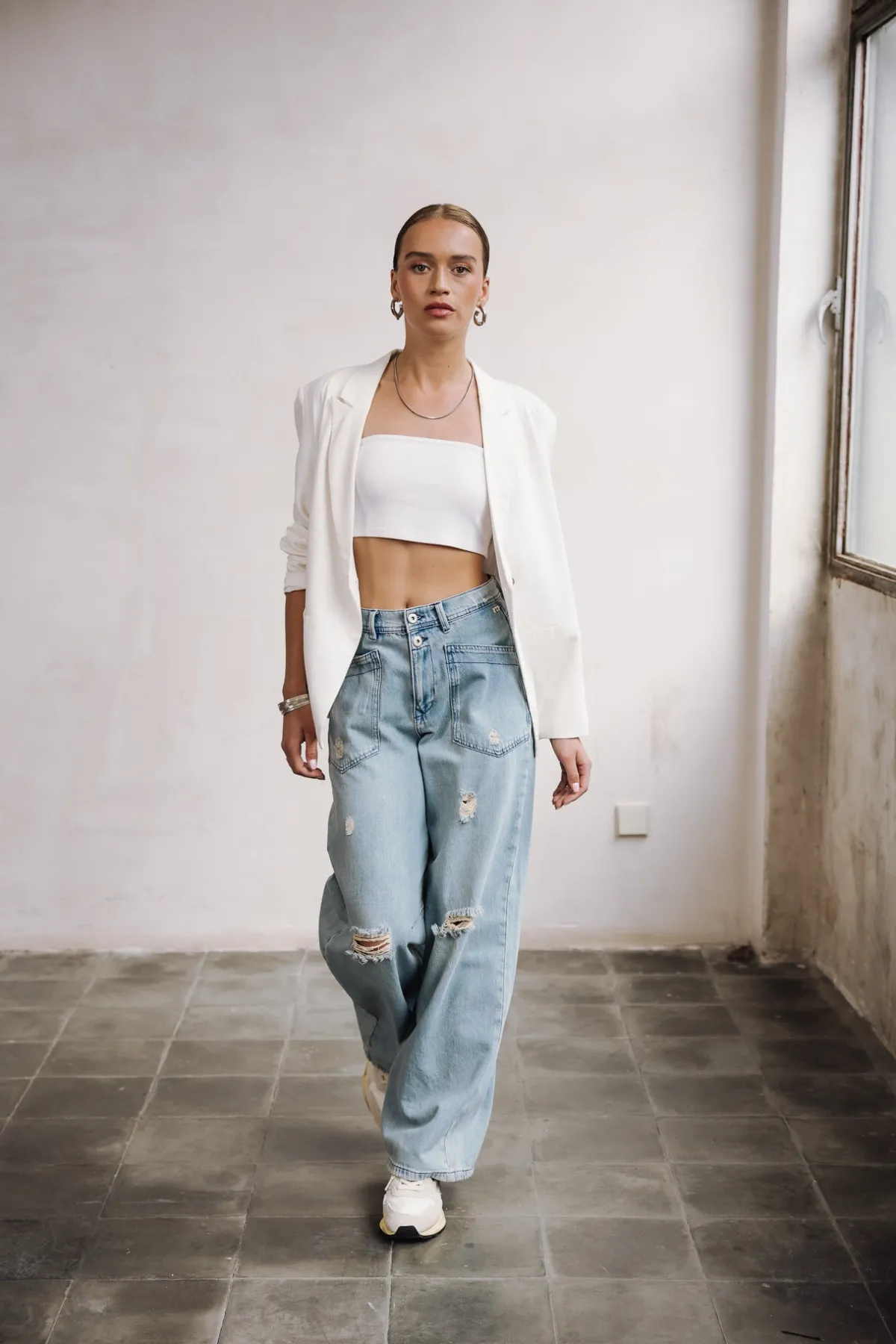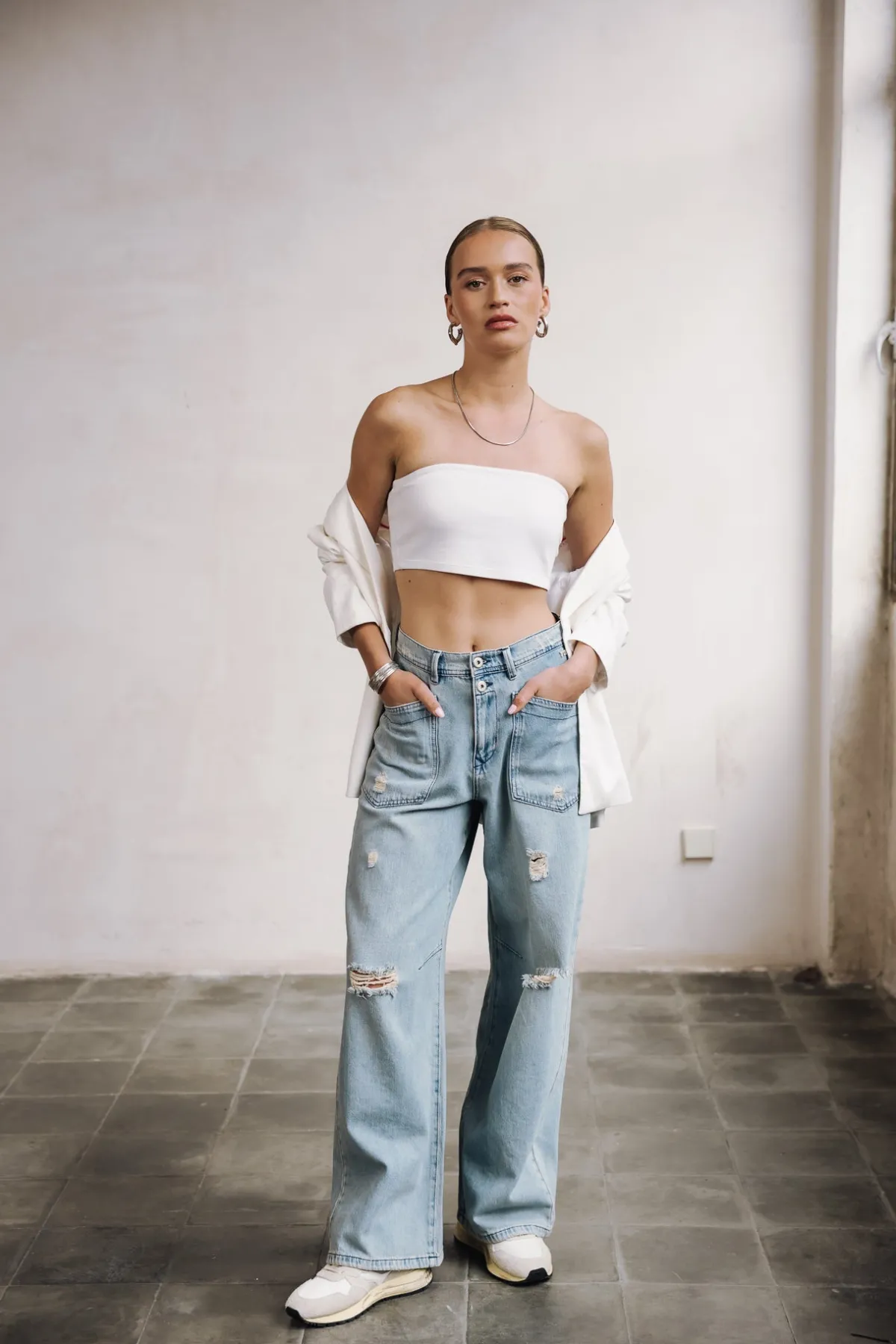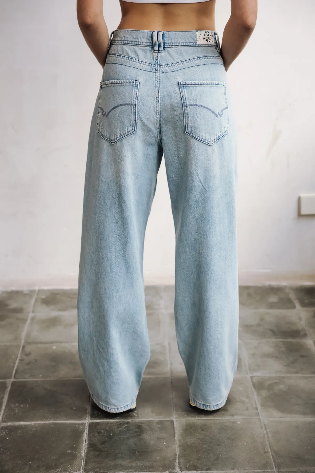 – Light blue, bleached wash, with rips