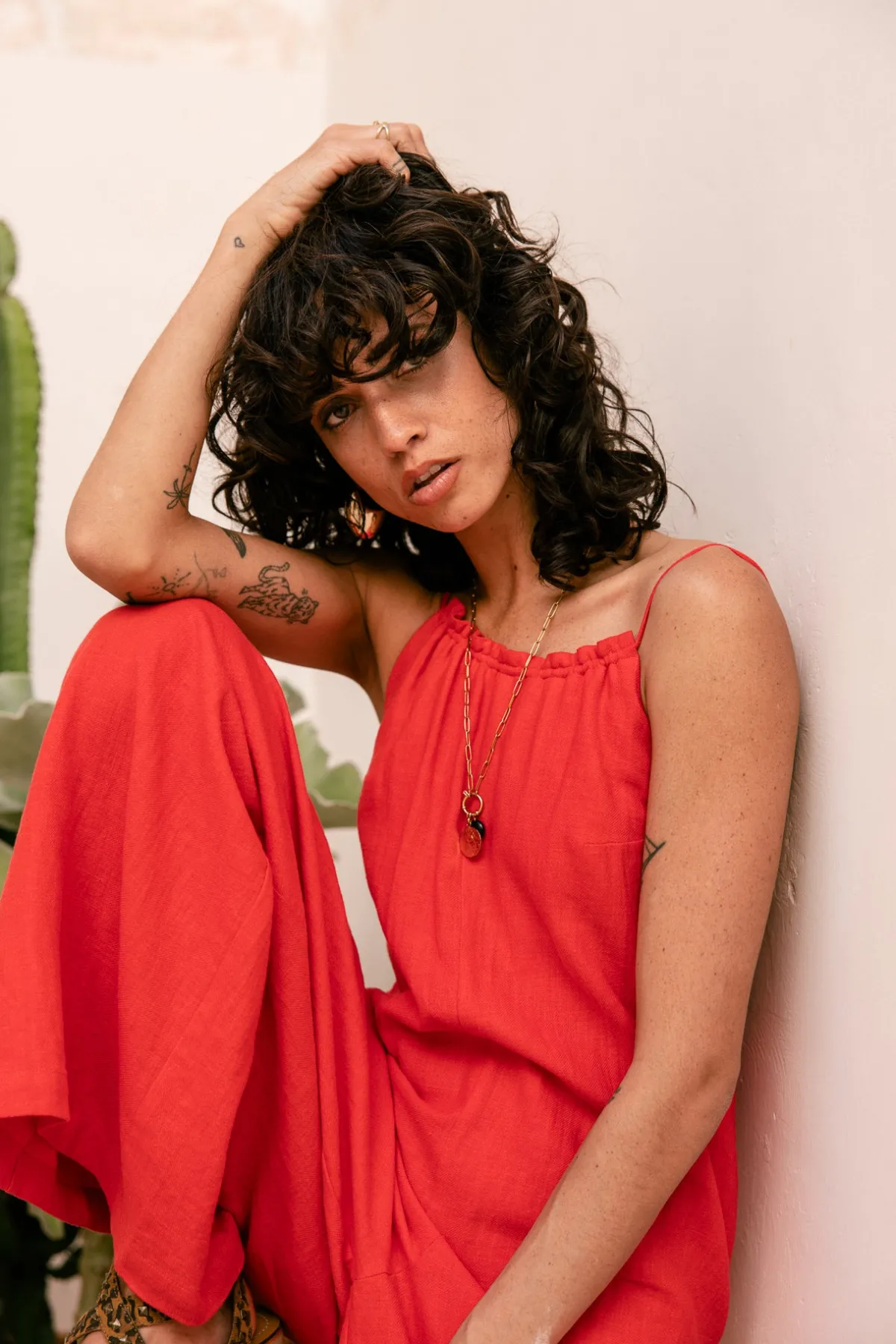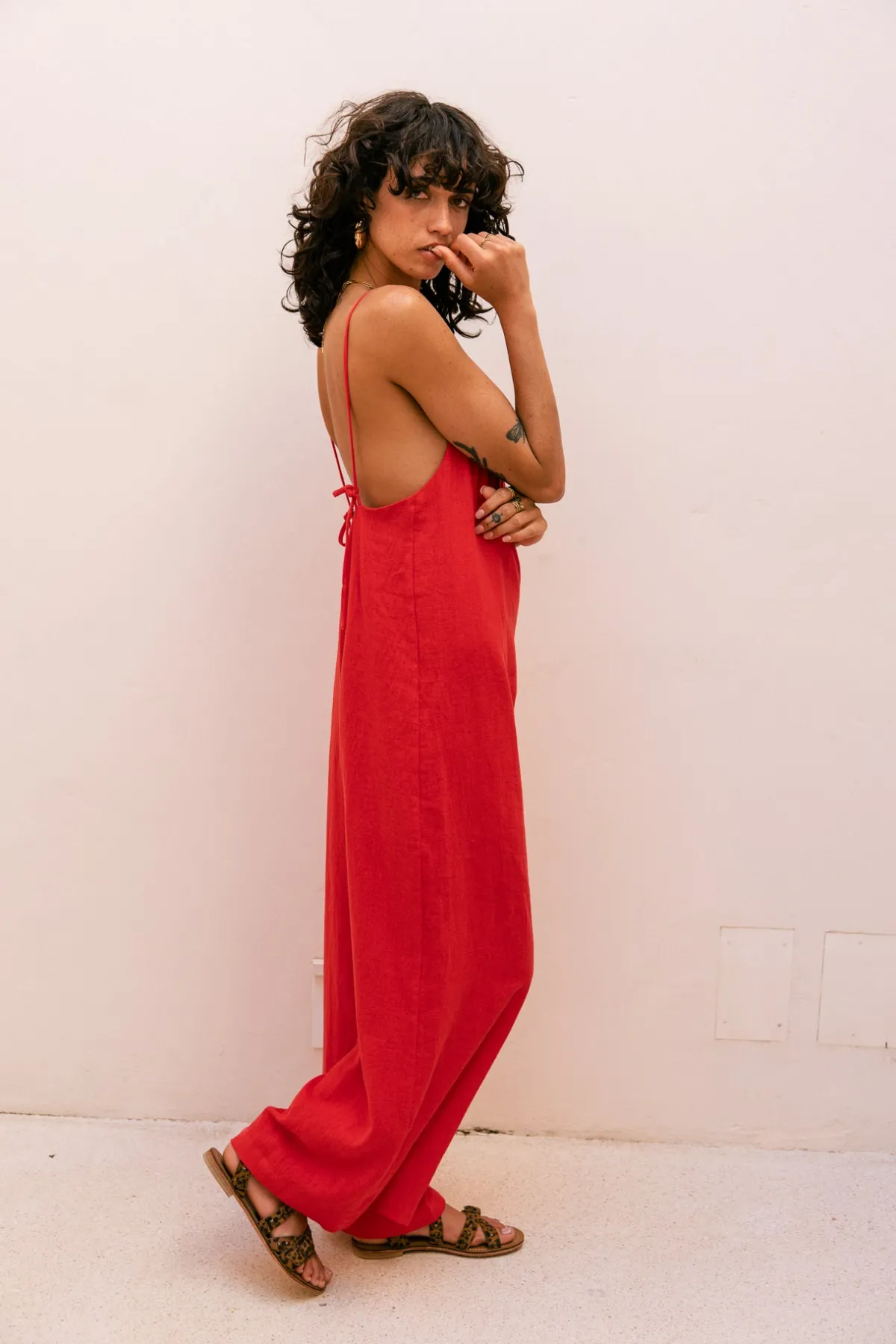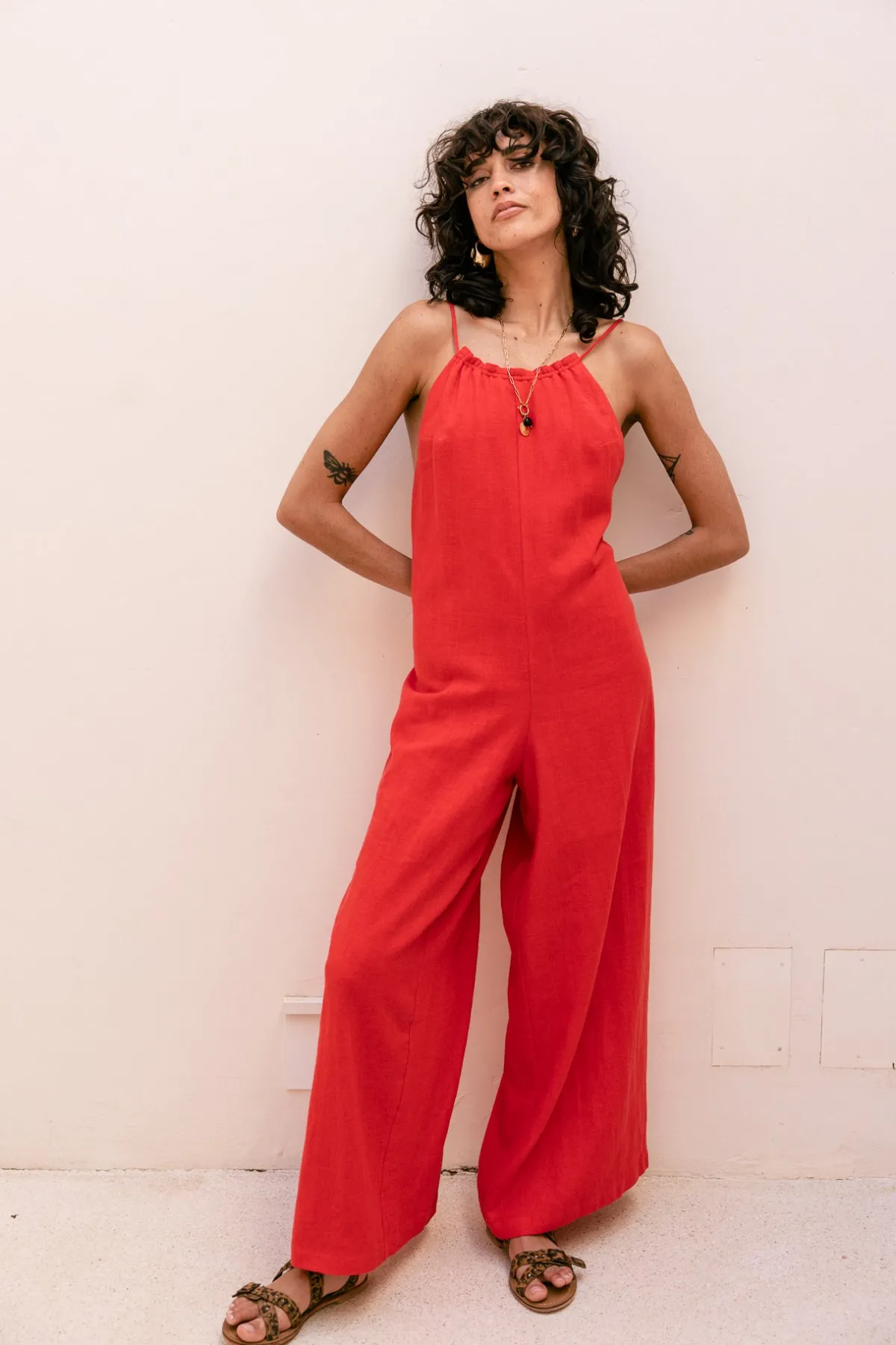 – Halter jumpsuit, wide leg, fluid