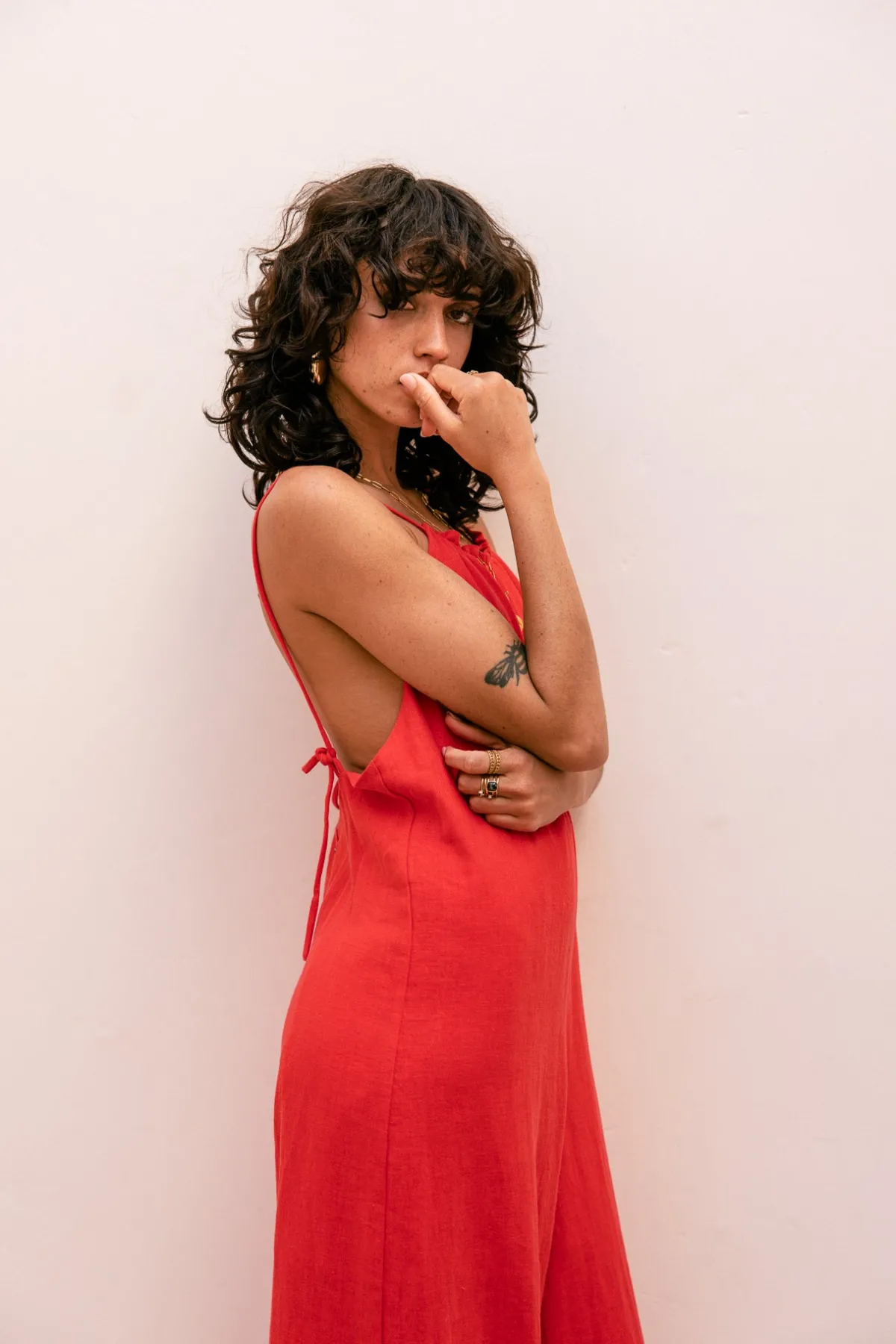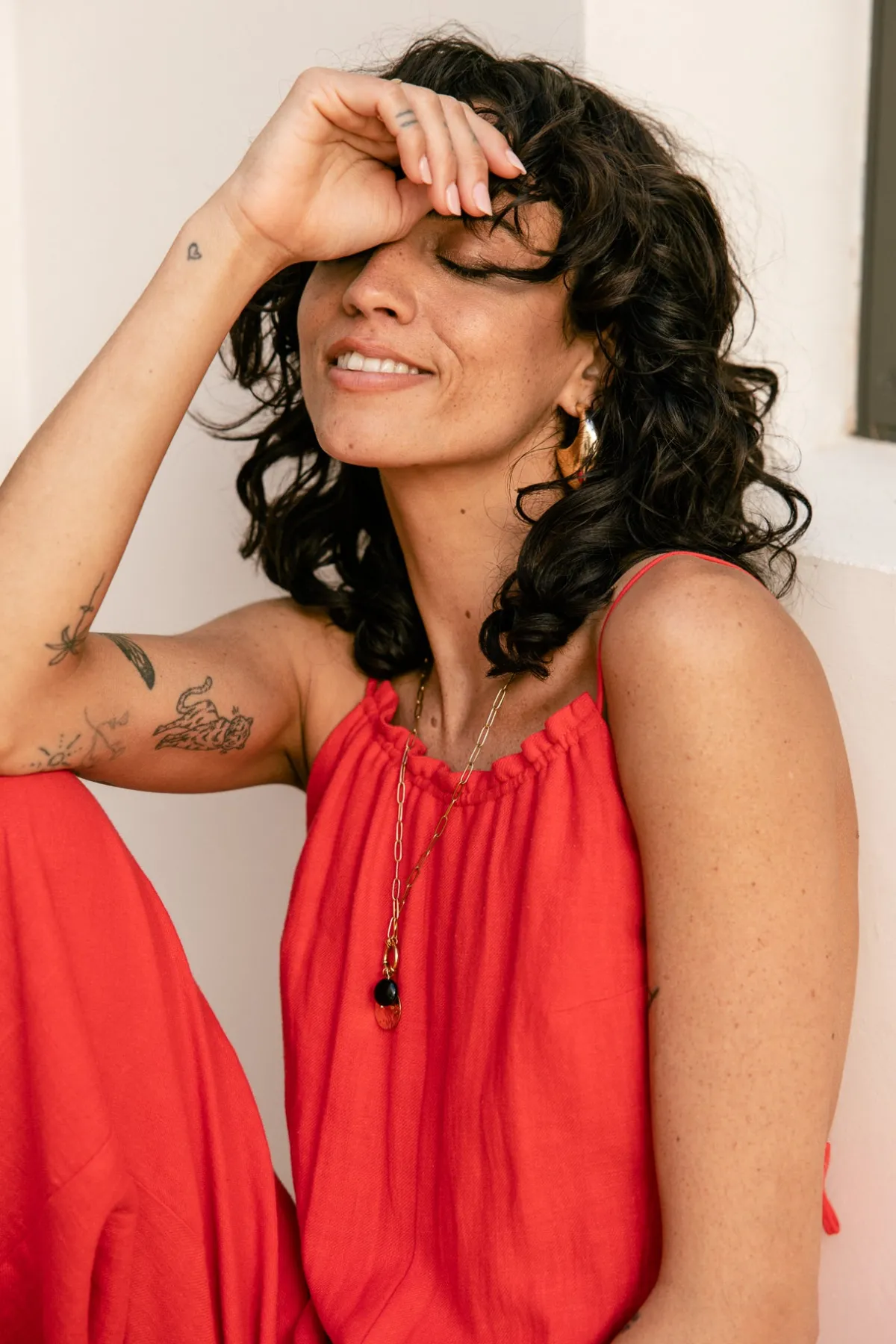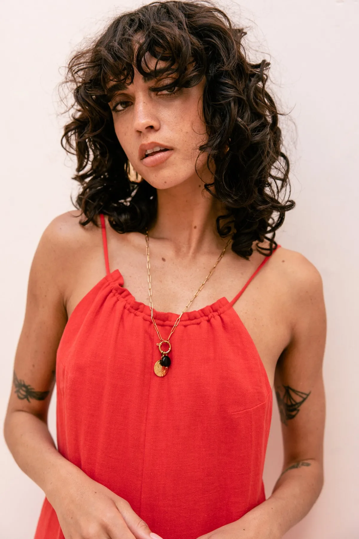 – Halter jumpsuit, wide leg, fluid