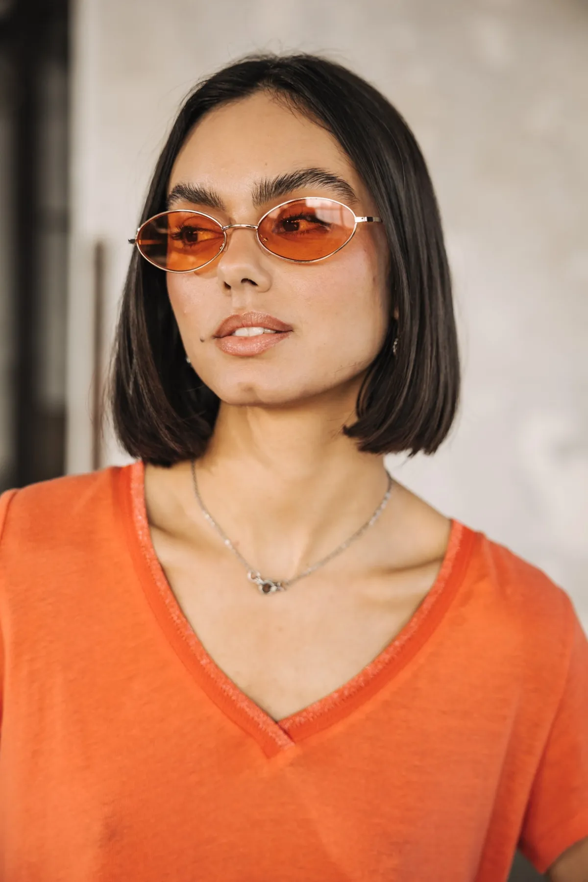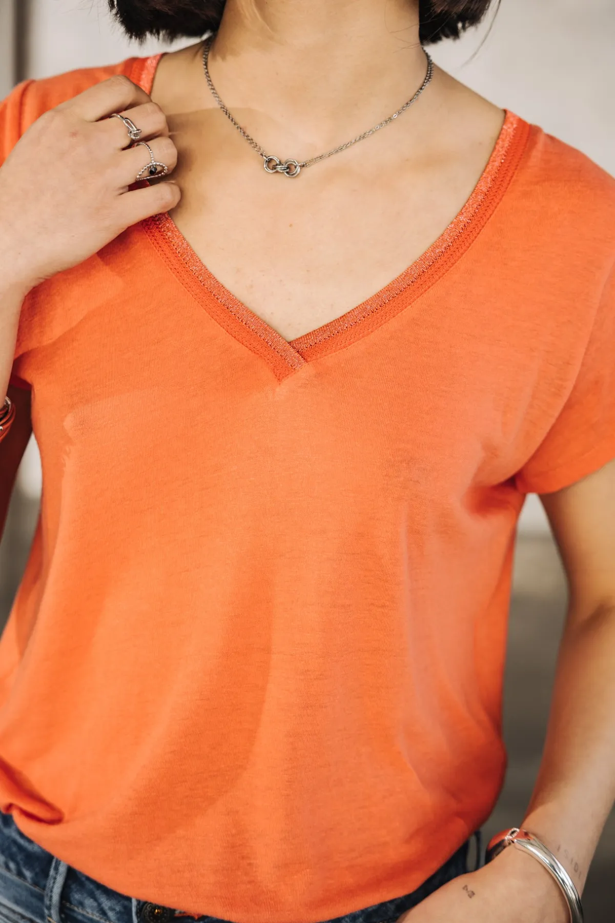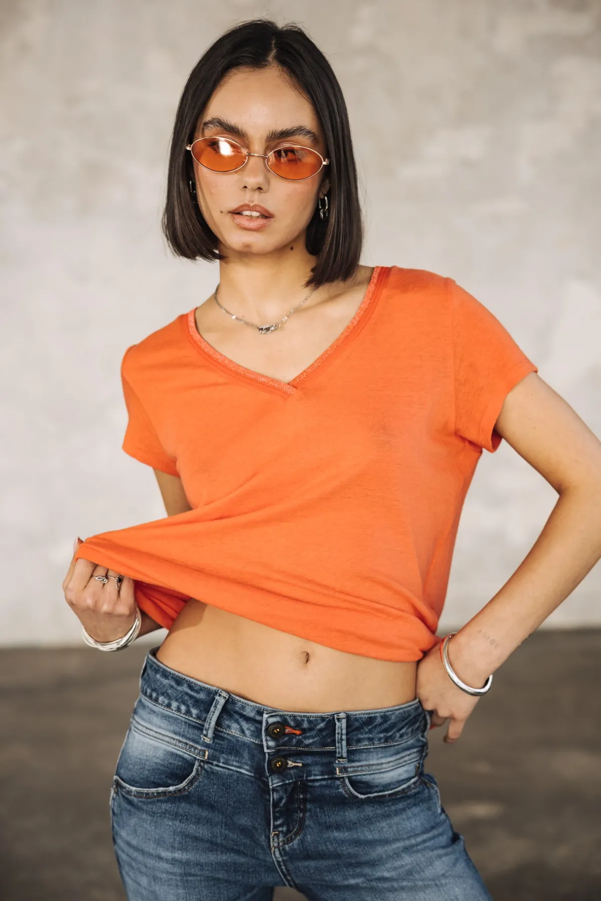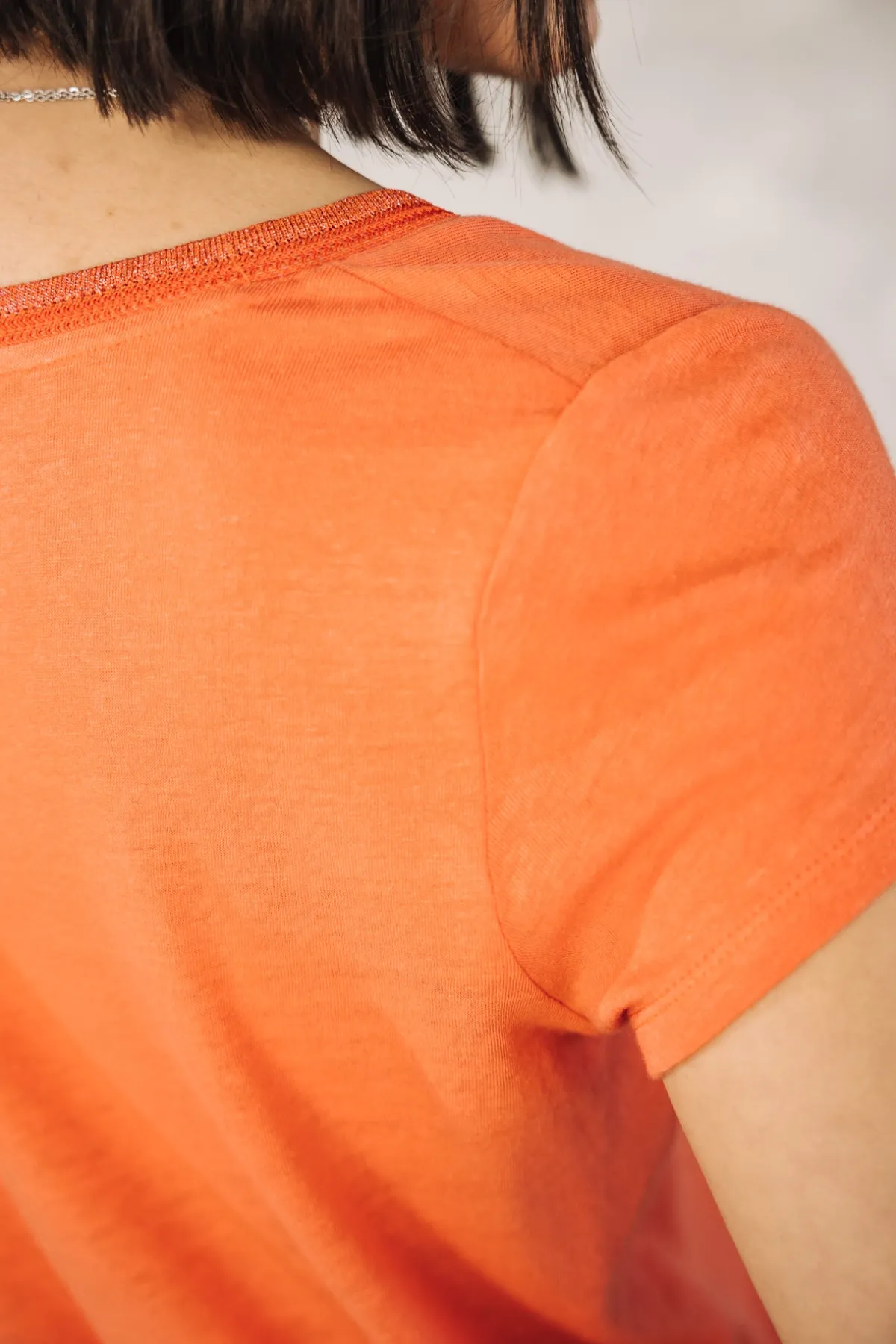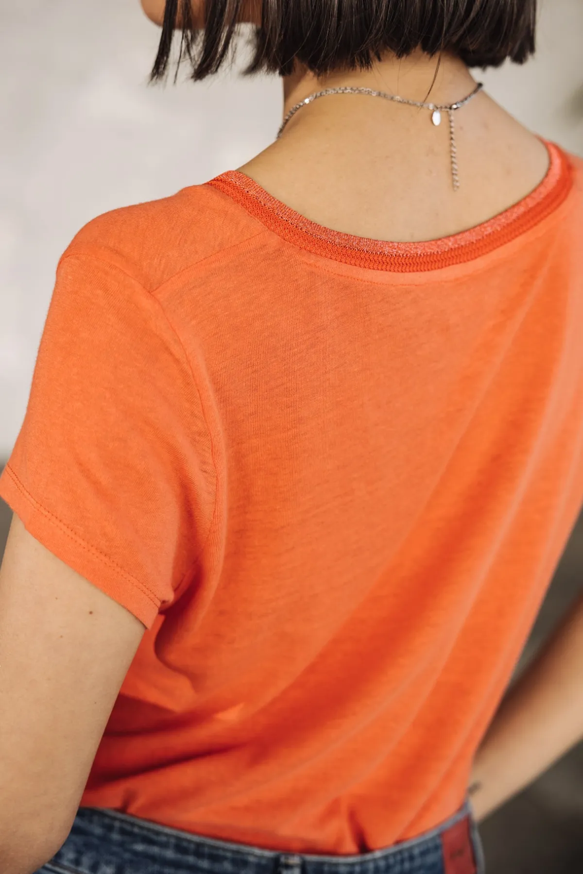 – Short-sleeved T-shirt in soft, plain viscose/linen jersey