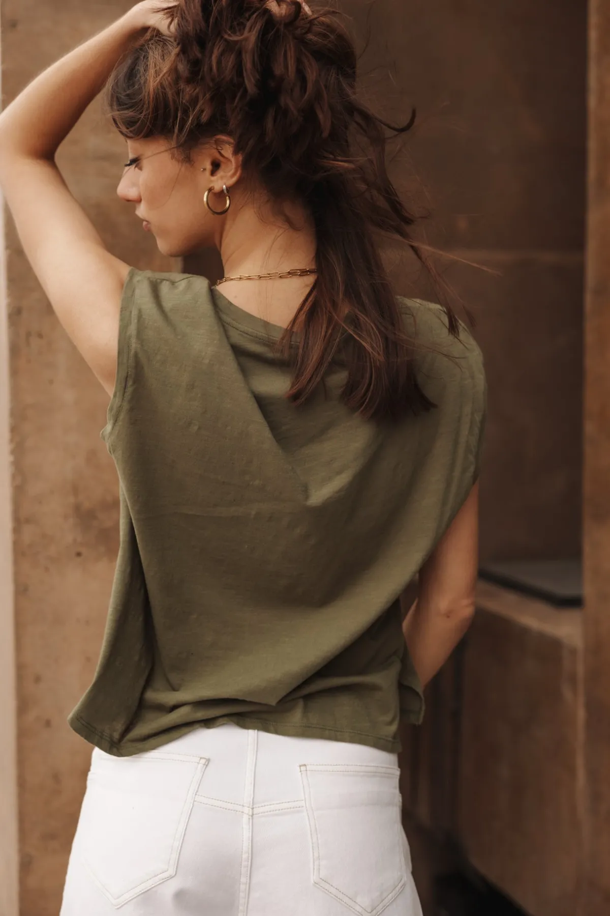 – Sleeveless, round-neck T-shirt in soft, plain, medium-weight flamed cotton jersey fabric