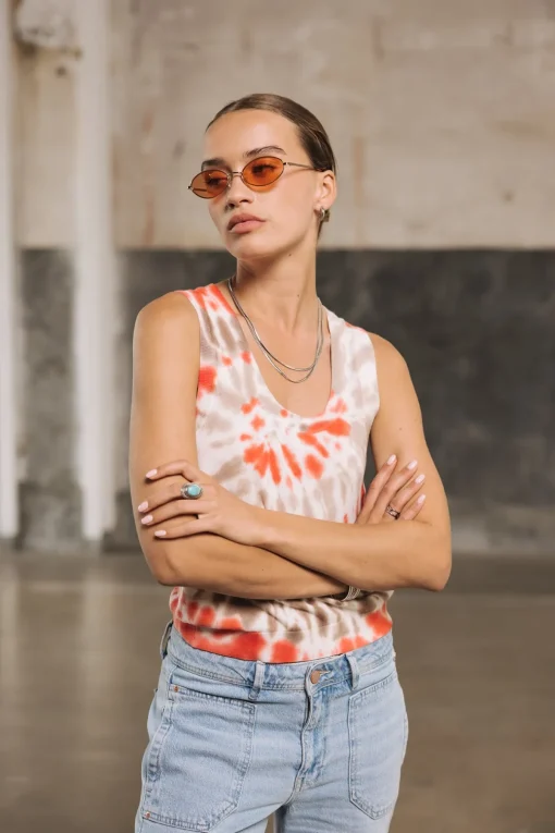 – Tank top in fine jersey stitch with tie&dye print
