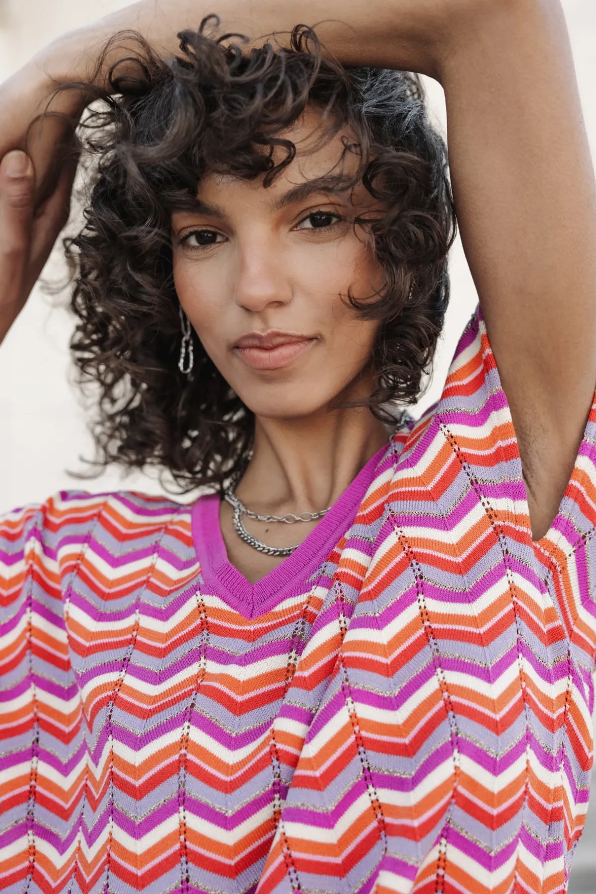 – Top in fine pointelle knit, fancy and multicolored